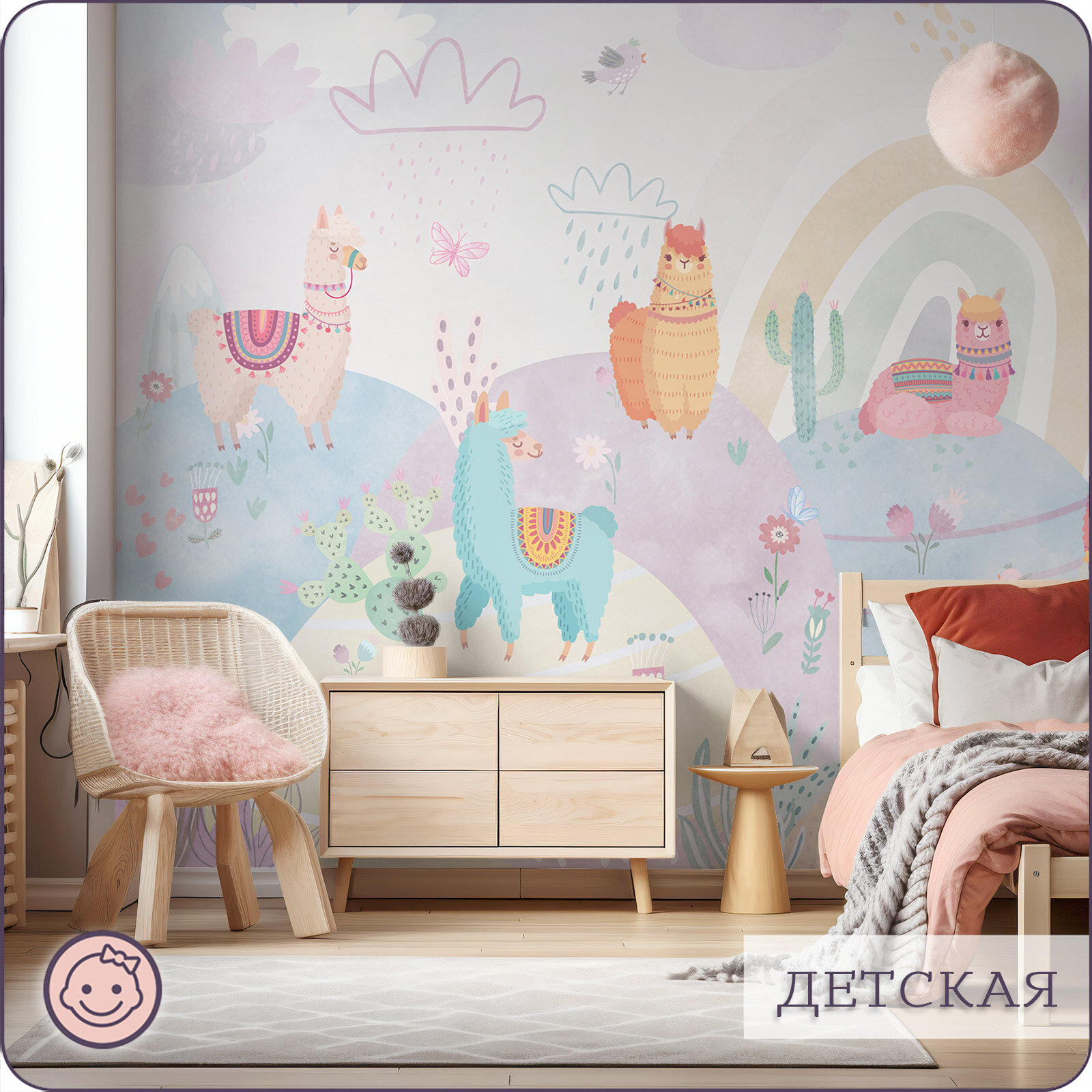 СохранитьФотообои на стену флизелиновые 3d Детские Ламы Горы 500x270 см Bartonwall K314 интересное: