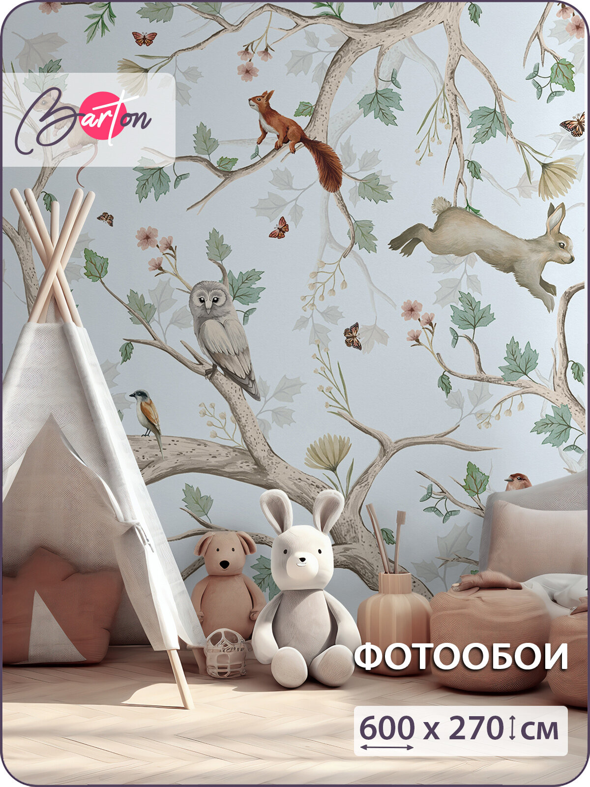 Купить Фотообои на стену флизелиновые 3d Детские Сказочный лес Животные 600х270 см Bartonwall K323_C