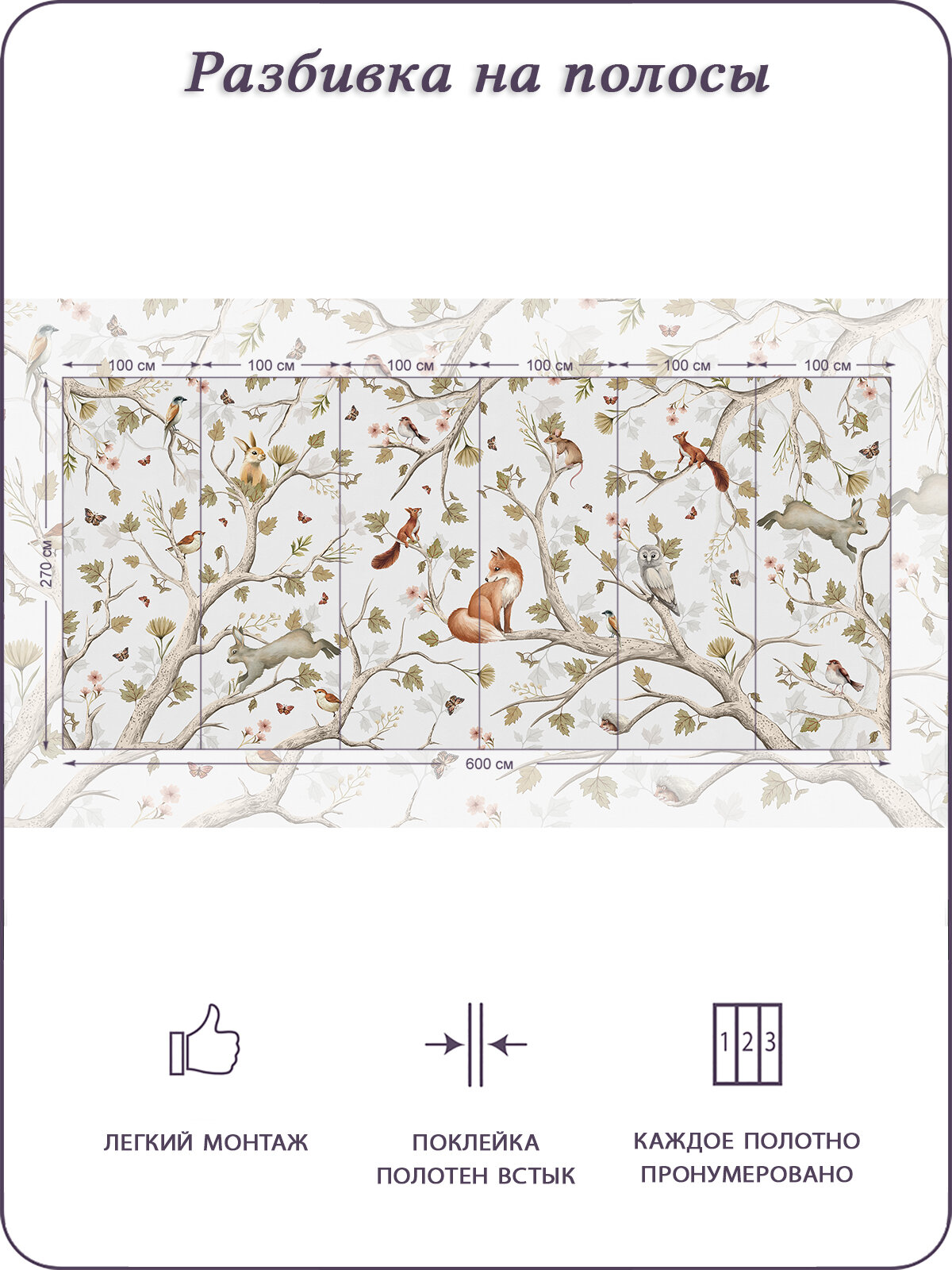 Купить Фотообои на стену флизелиновые 3d Детские Сказочный лес Животные 600х270 см Bartonwall K323_G