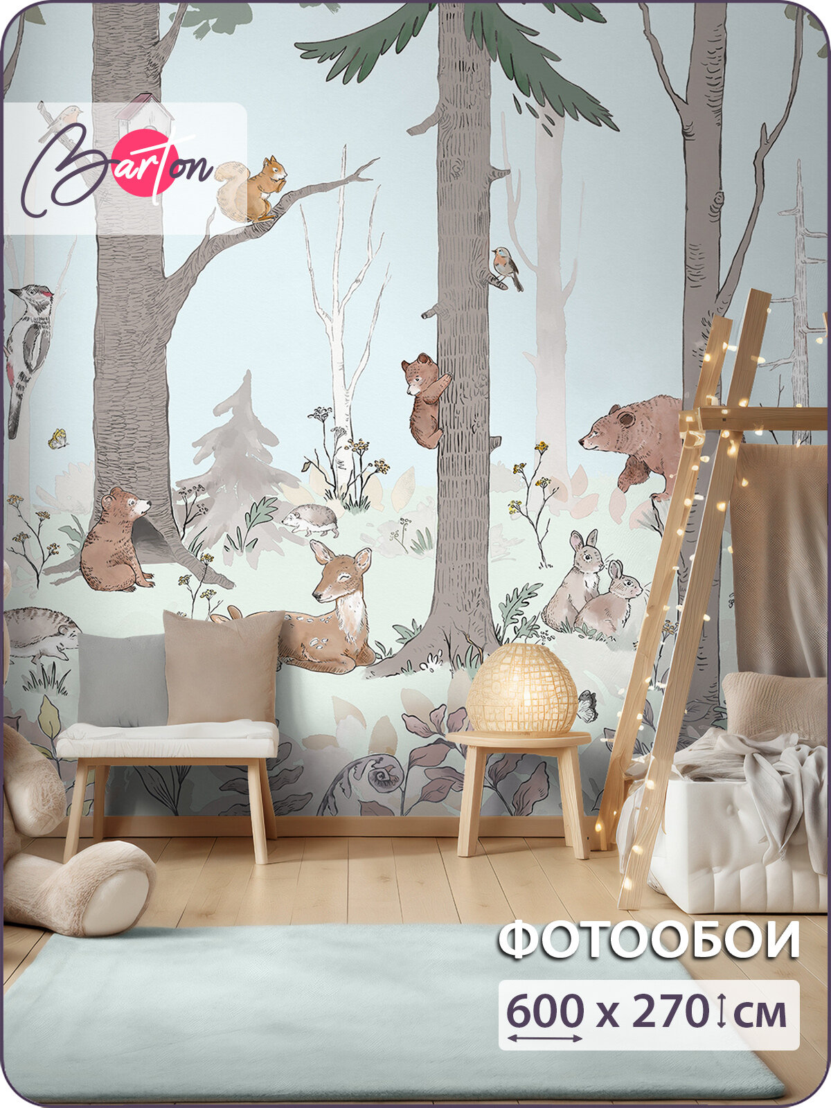 Фотообои на стену флизелиновые 3d Детские Животные Лес 600х270 см Bartonwall K297-P
