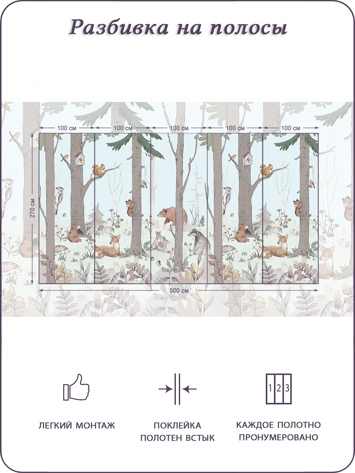 Купить Фотообои на стену флизелиновые 3d Детские Сказочный лес Животные 500х270 см Bartonwall K219_C