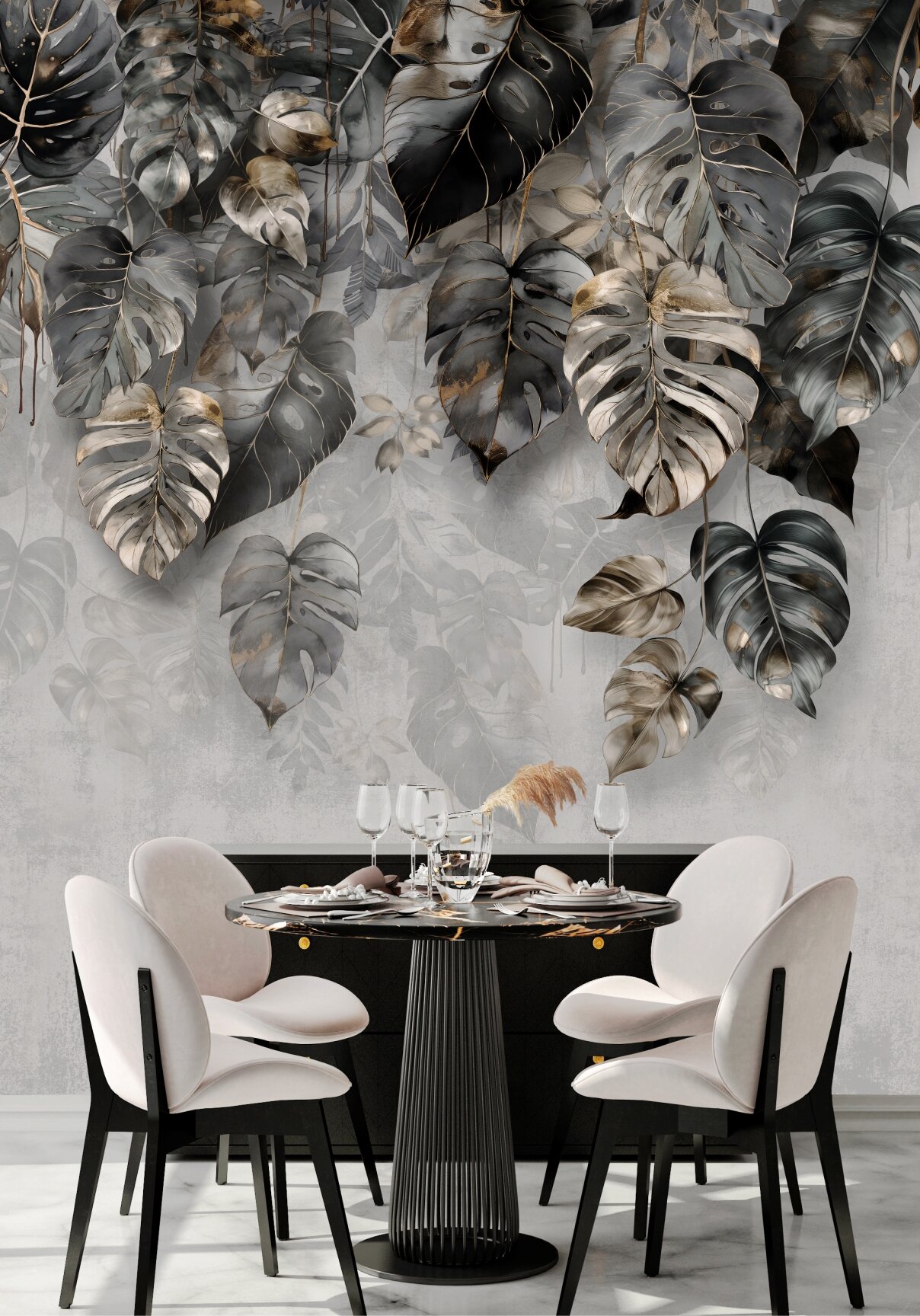 Купить Фотообои "Темные тропические листья" 200*260 см. /Флизелиновые фотообои для гостиной, спальни