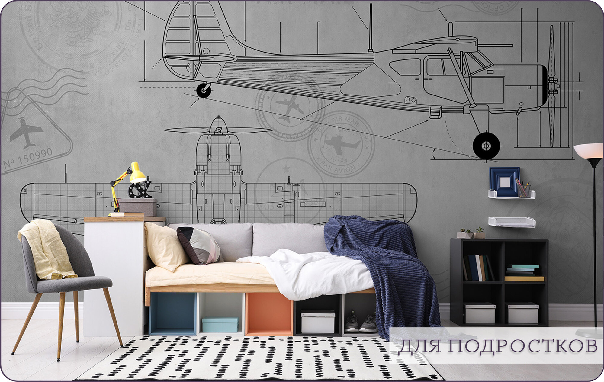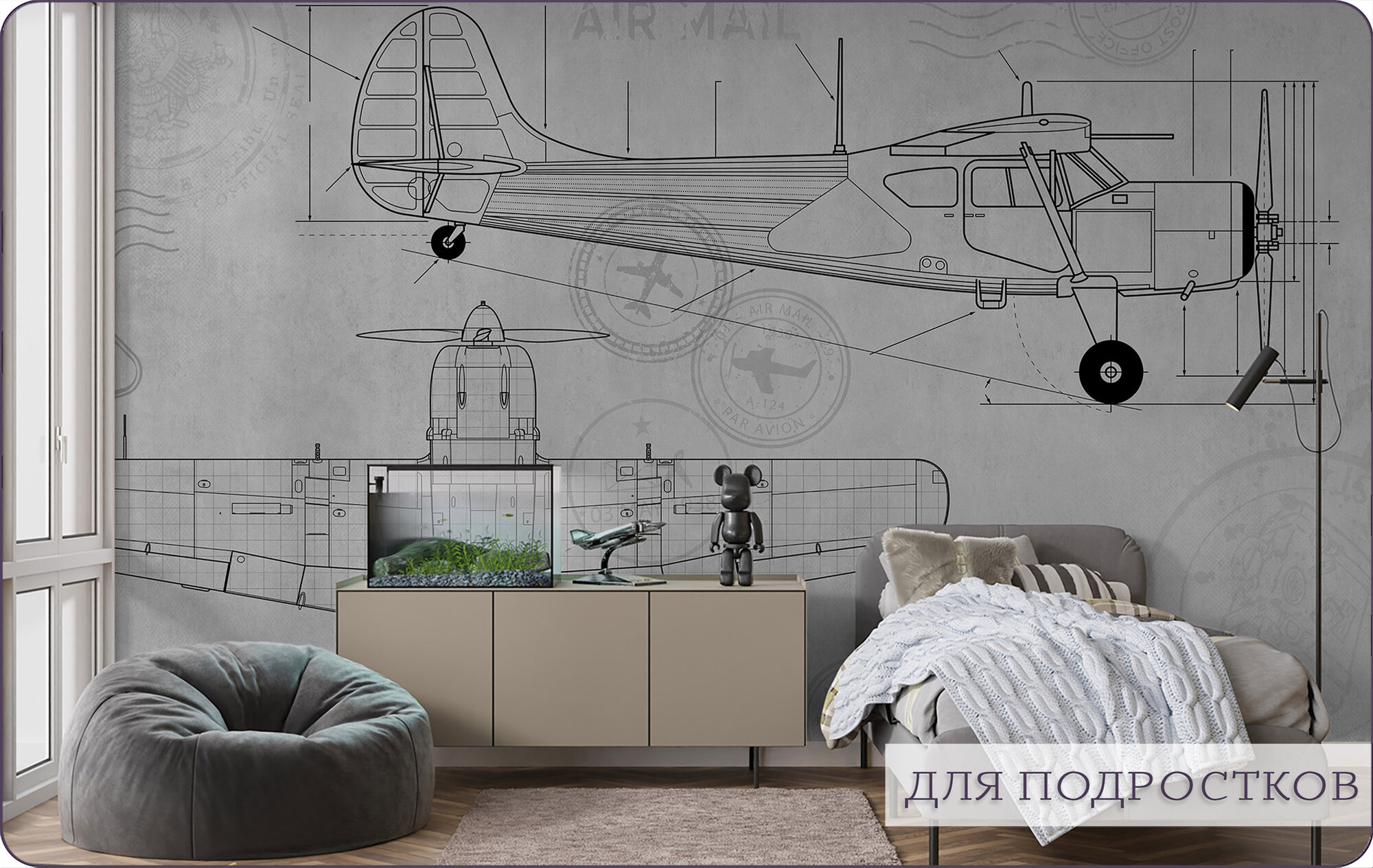 СохранитьФотообои на стену флизелиновые 3d Детские Для подростка Самолет Чертеж 400х270 см Bartonwall K273-G интересное:
