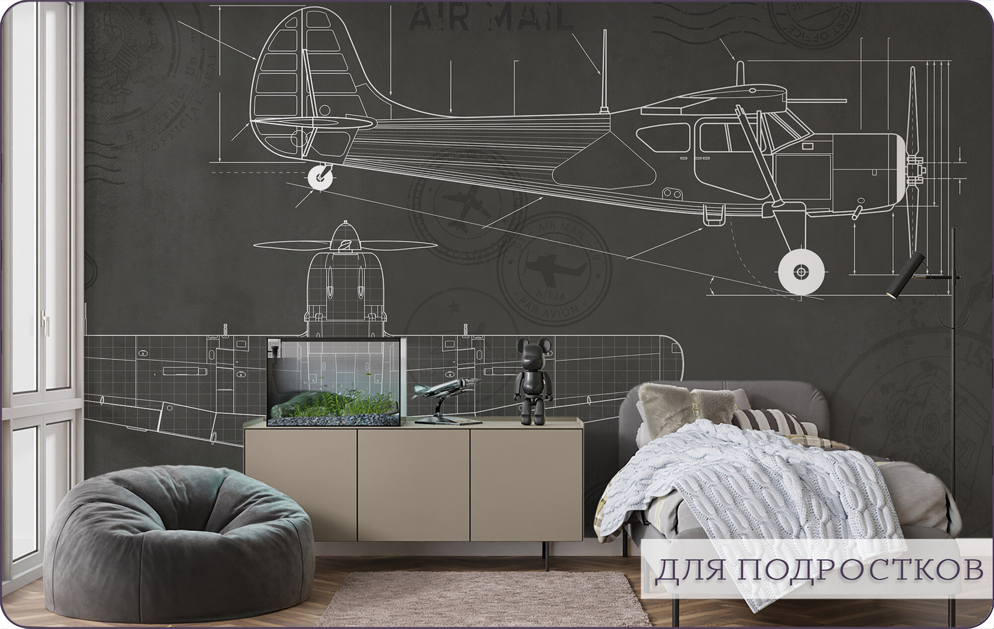 СохранитьФотообои на стену флизелиновые 3d Детские Для подростка Самолет Чертеж 400х270 см Bartonwall K273 интересное: