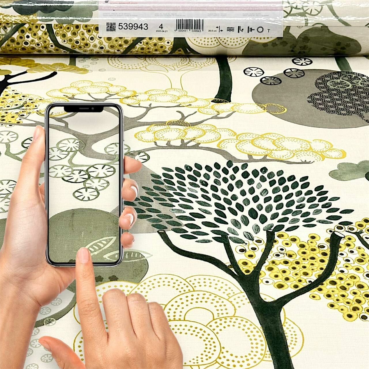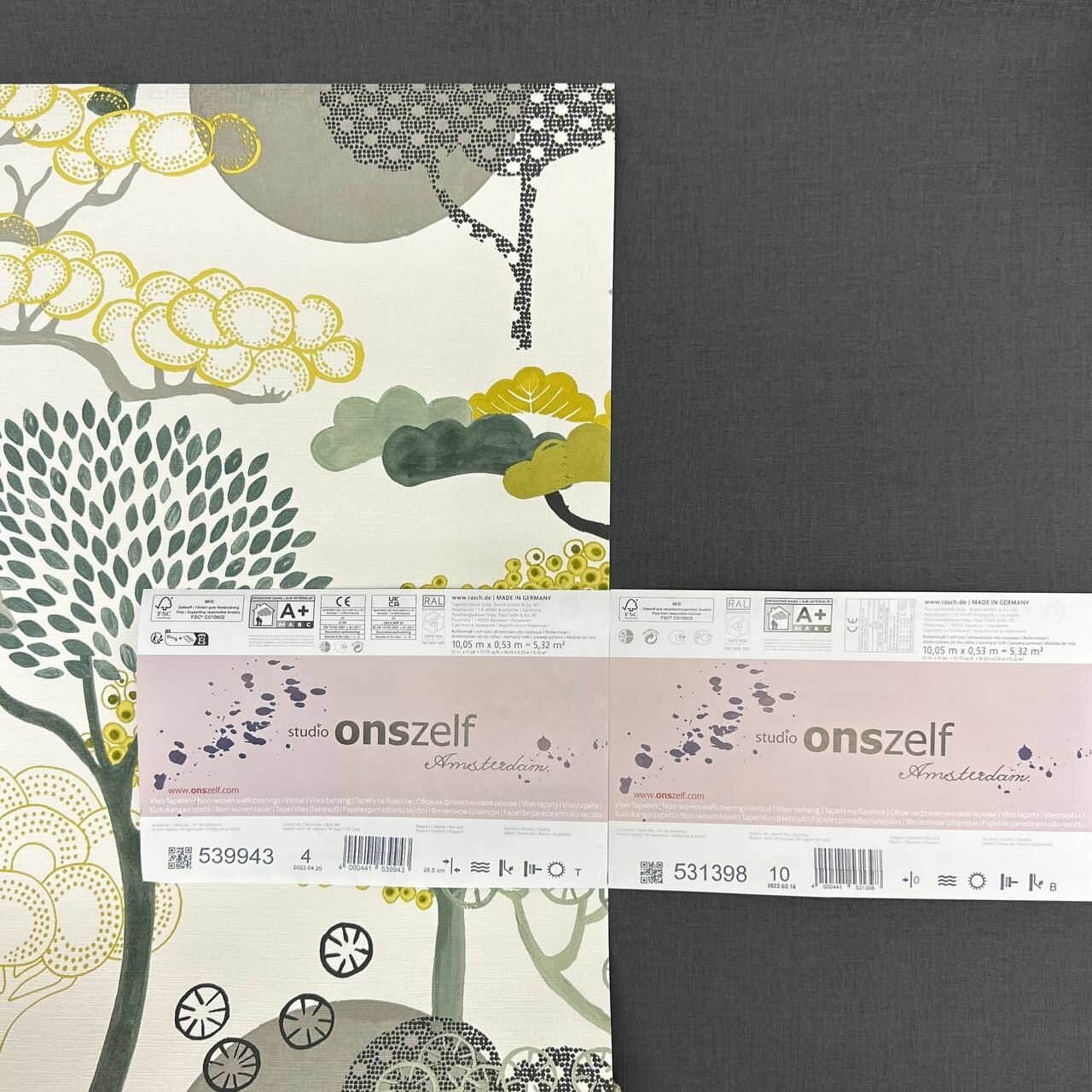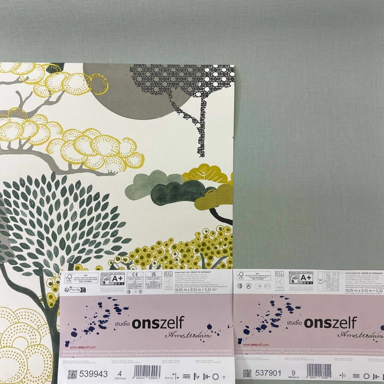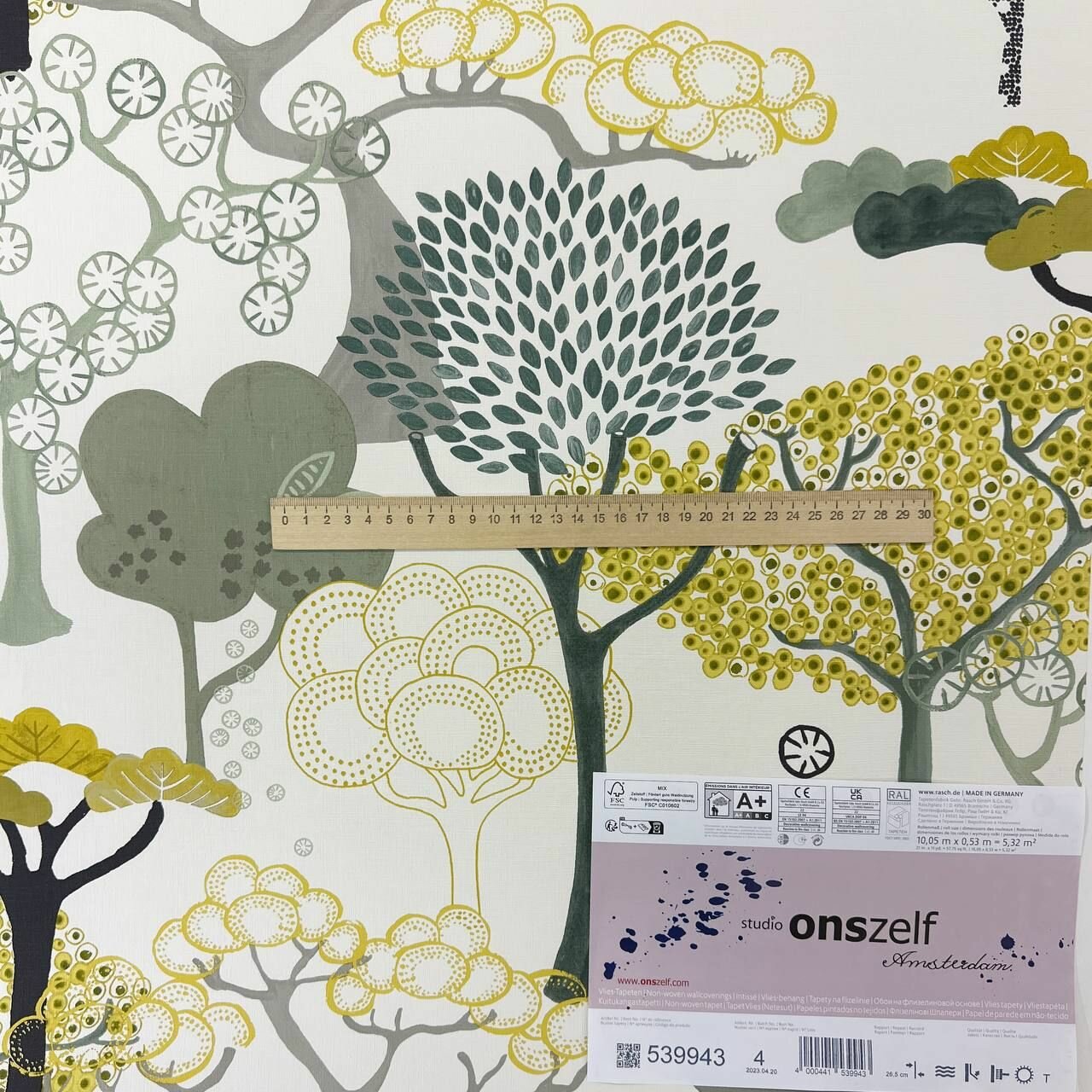 Обои Rasch Amazing 539943, оливковые и желтые деревья в футуристическом стиле, моющиеся интересное:
