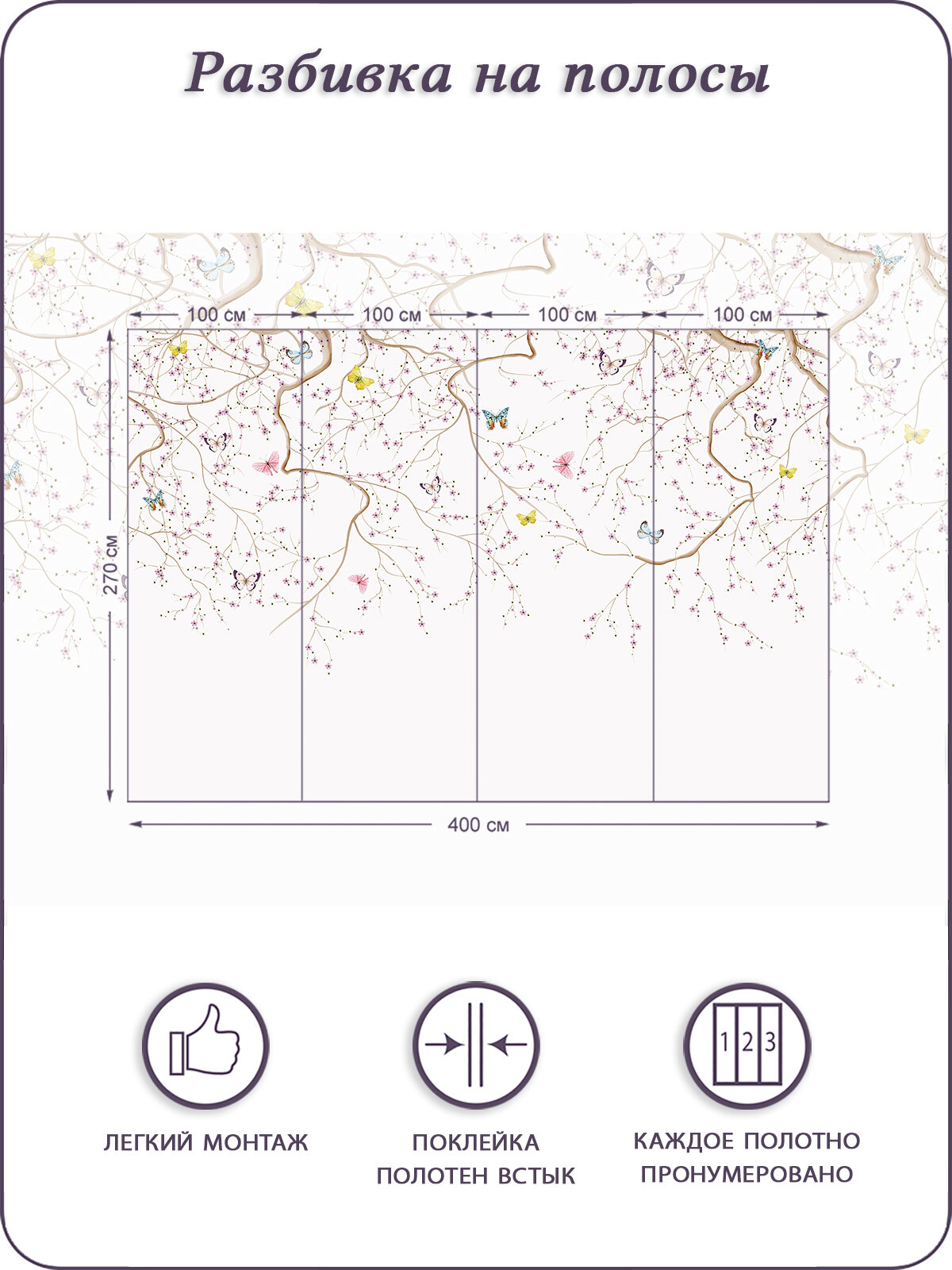 Купить Фотообои на стену флизелиновые 3d Растения Дерево Бабочки 400х270 см Bartonwall M119