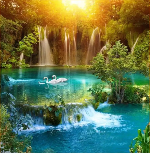 Фотообои бумажные глянцевые Лебединое озеро 134*196 см. (4 листа)