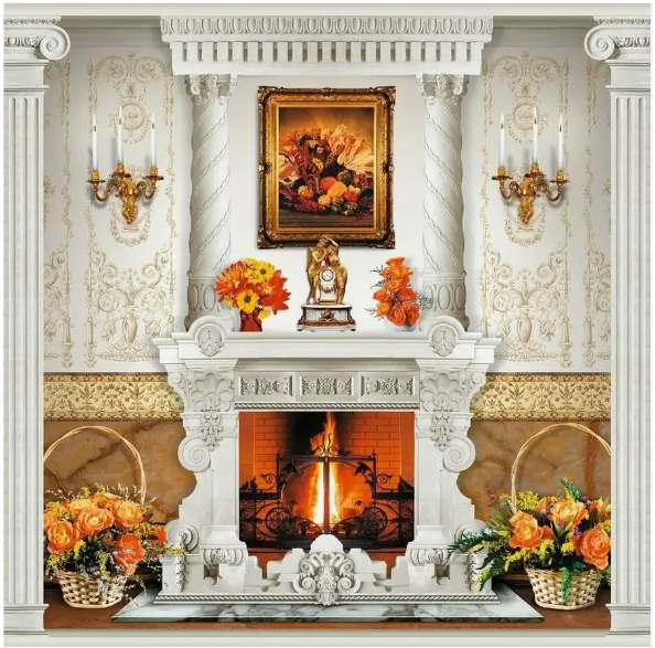 Фотообои бумажные глянцевые Камин классик 196*201 см.(6 листов)