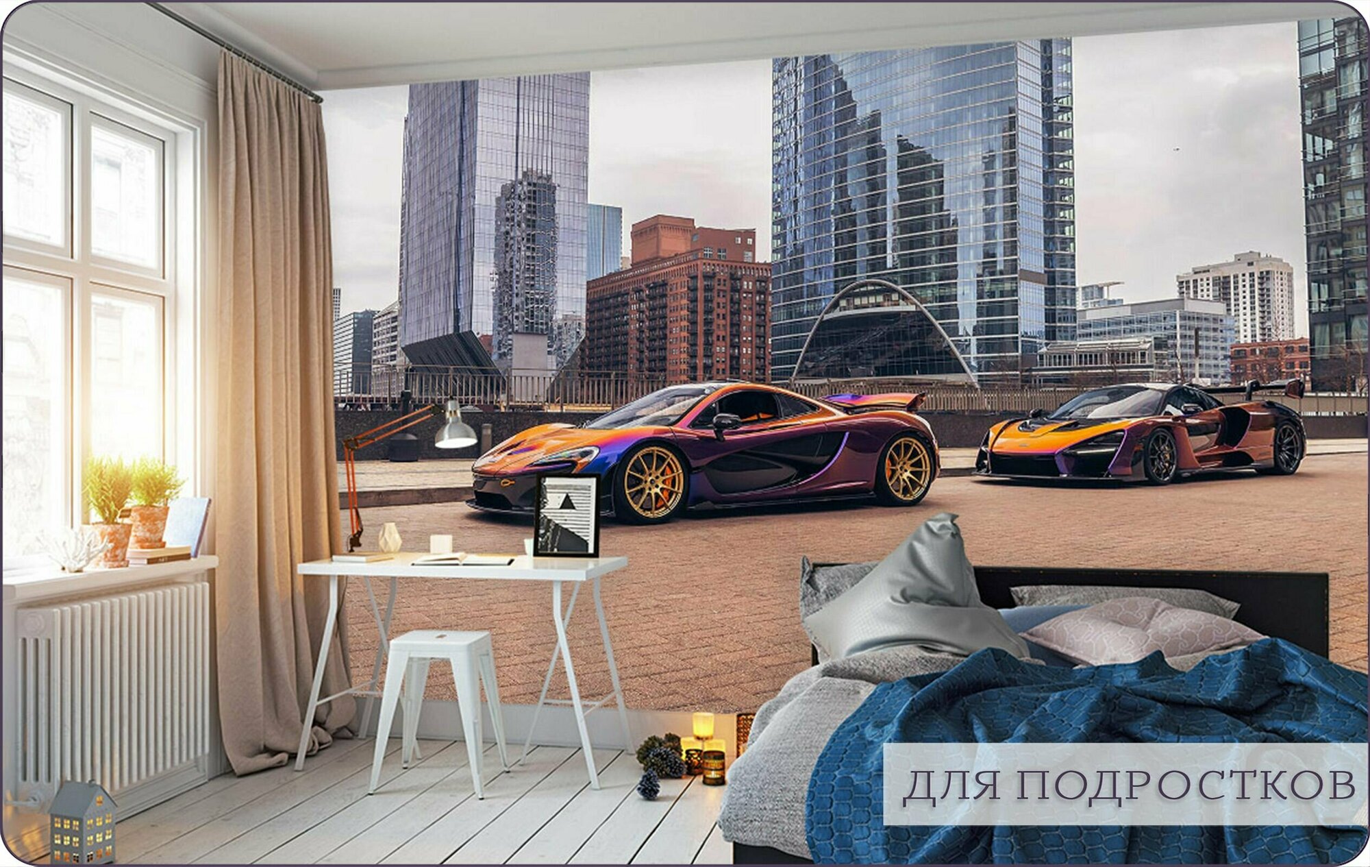 СохранитьФотообои на стену флизелиновые 3d Город Машина Небоскребы 300х270 см Bartonwall M109 интересное: