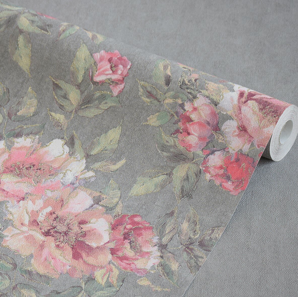 Обои флизелиновые, винил горячего тиснениея, моющиеся Wall Up Maria 1.06м х 10.05м, цветы розовые, фон серый, матовый интересное: