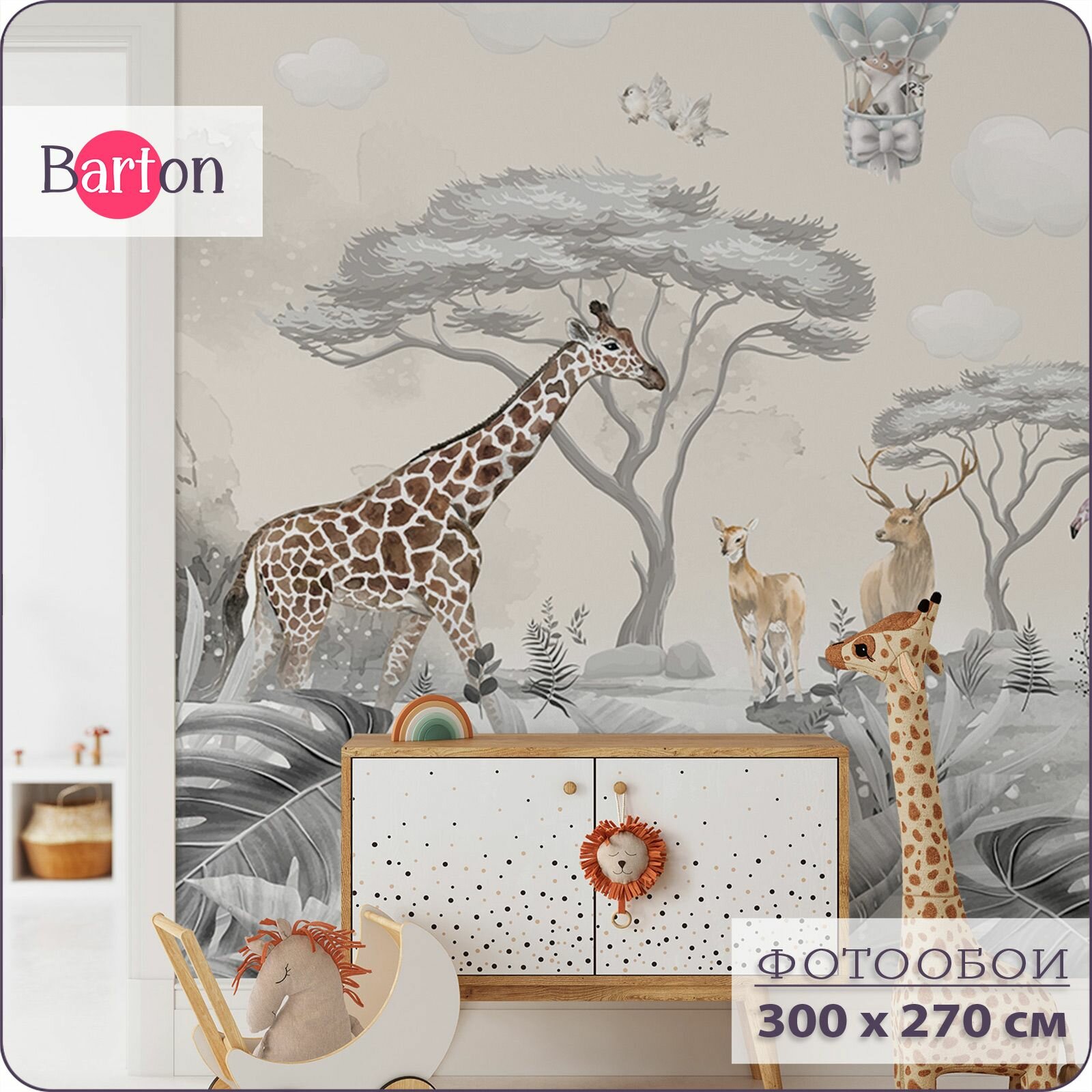 Купить Фотообои на стену флизелиновые 3d Детские Животные Саванна 300х270 см Bartonwall K040-B