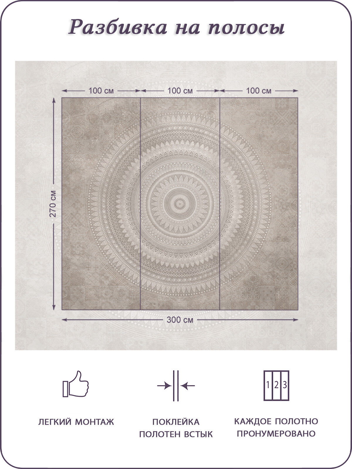 Фотообои на стену флизелиновые 3d Мандала Узор 300x270 см Bartonwall M274_G