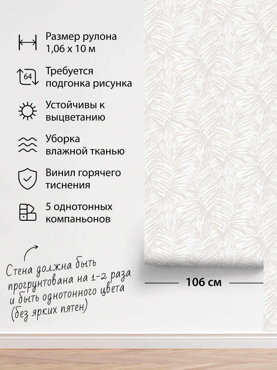 Обои виниловые флизелиновые, листья бежевые, метровые, для гостиной, Goa (Moda interio, арт. 41590-14)