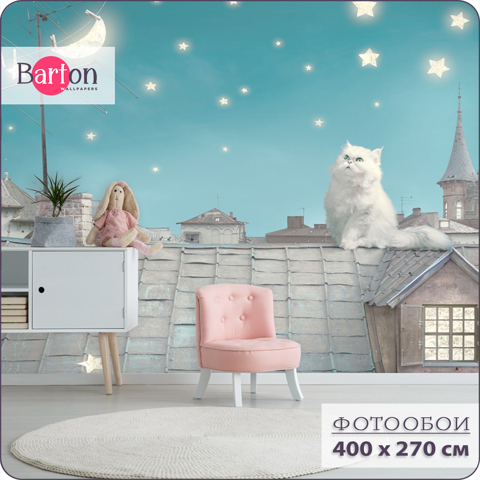 Купить Фотообои на стену флизелиновые 3d Детские Кот на крыше 400х270 см Bartonwall K033