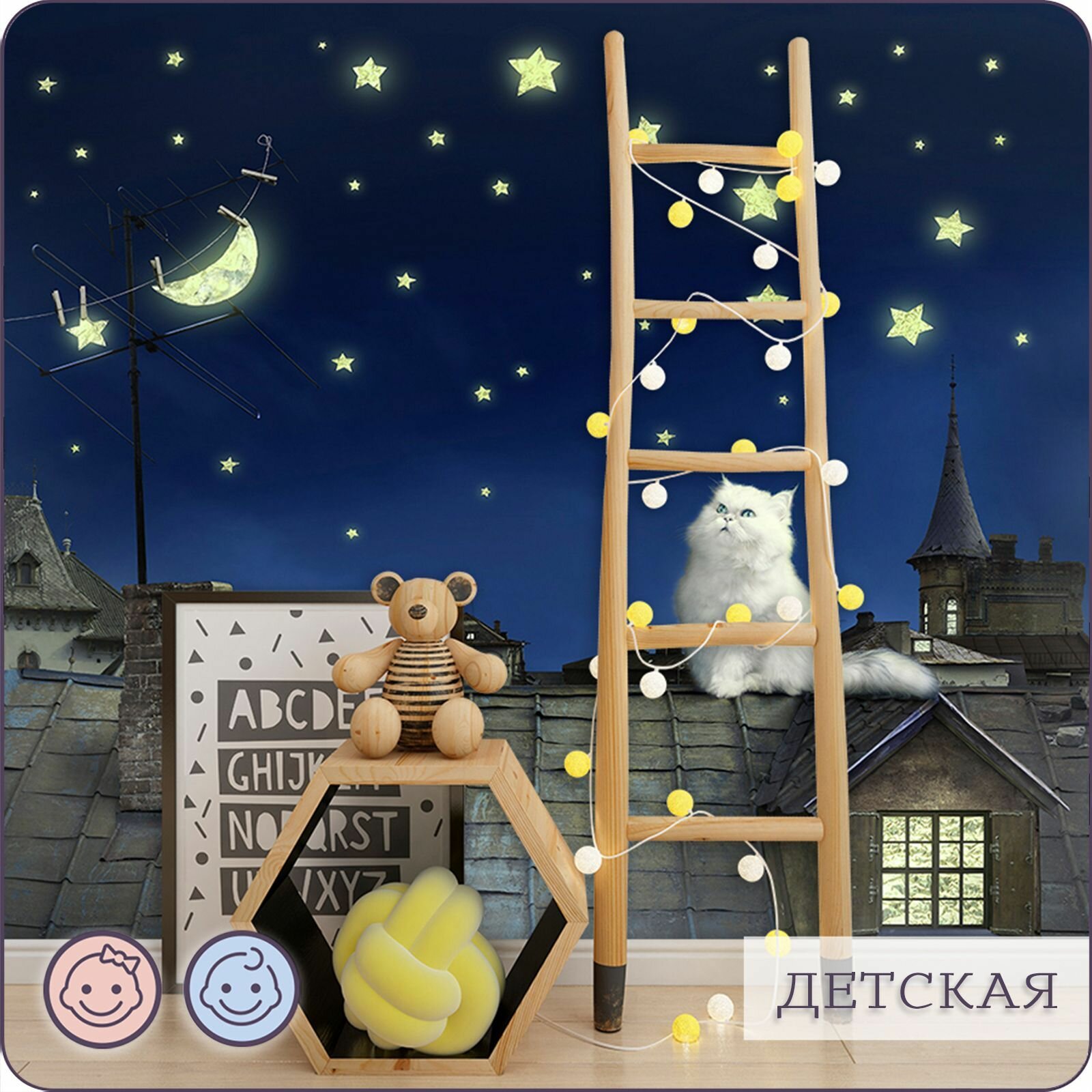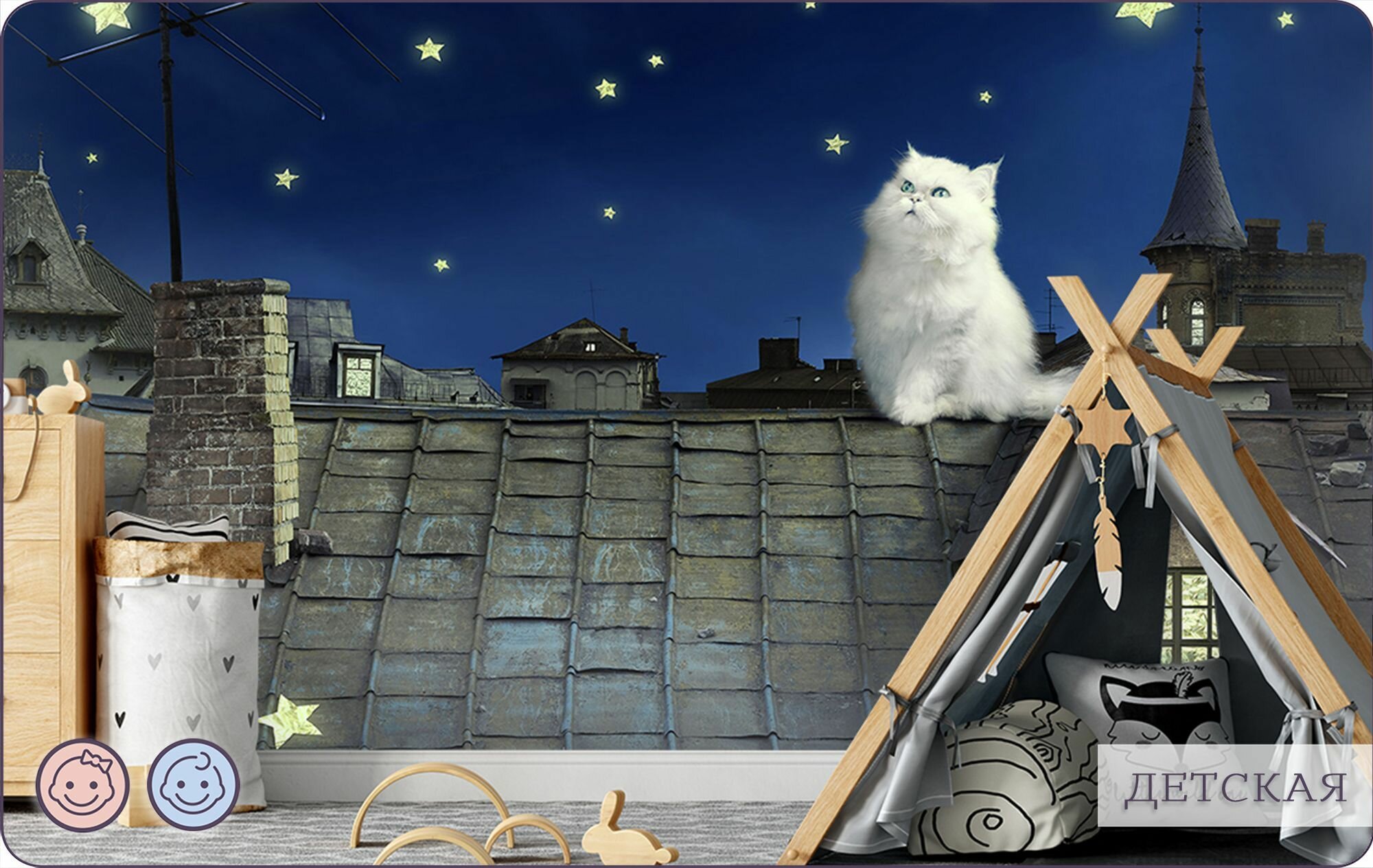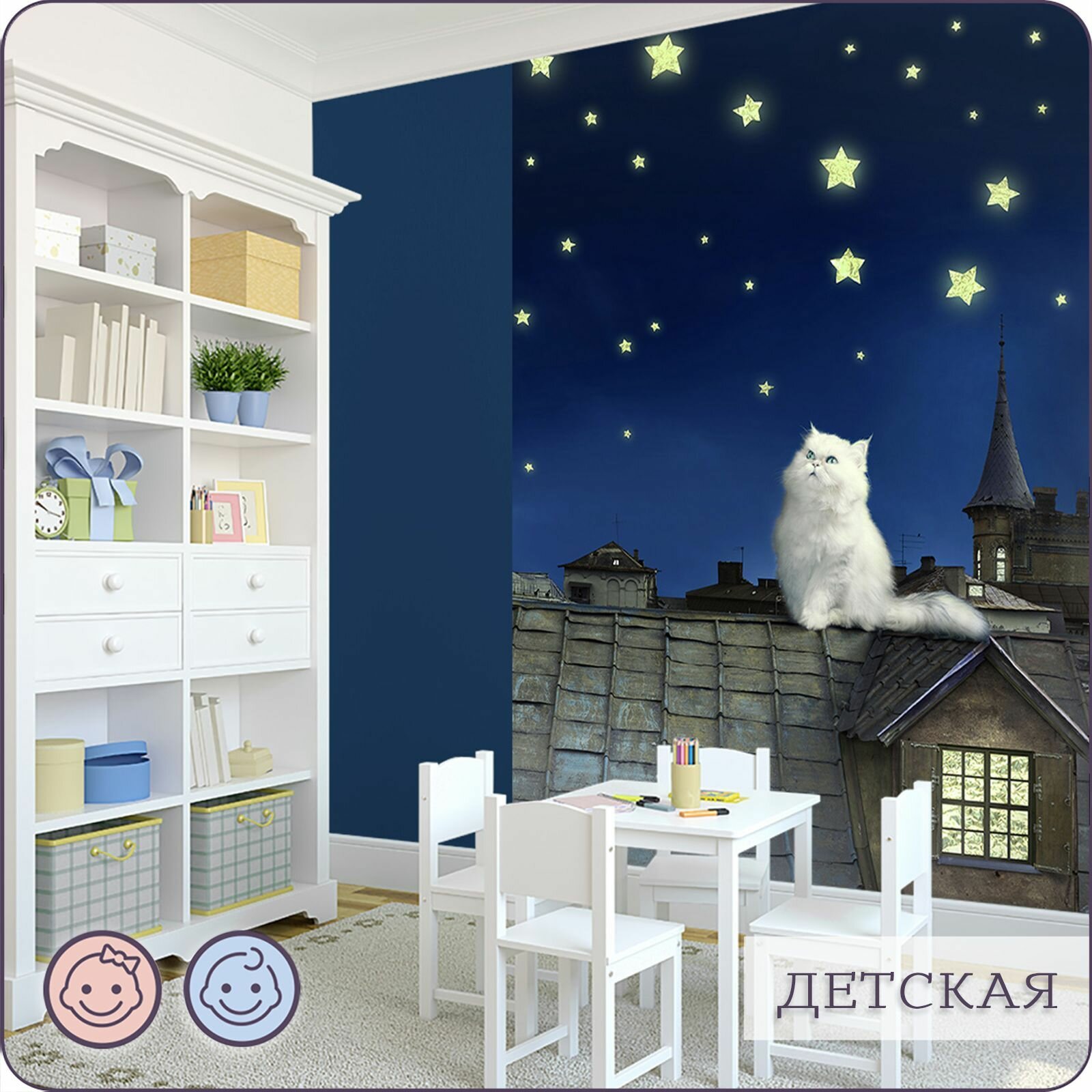 СохранитьФотообои на стену флизелиновые 3d Детские Кот на крыше 300х270 см Bartonwall K033-C интересное: