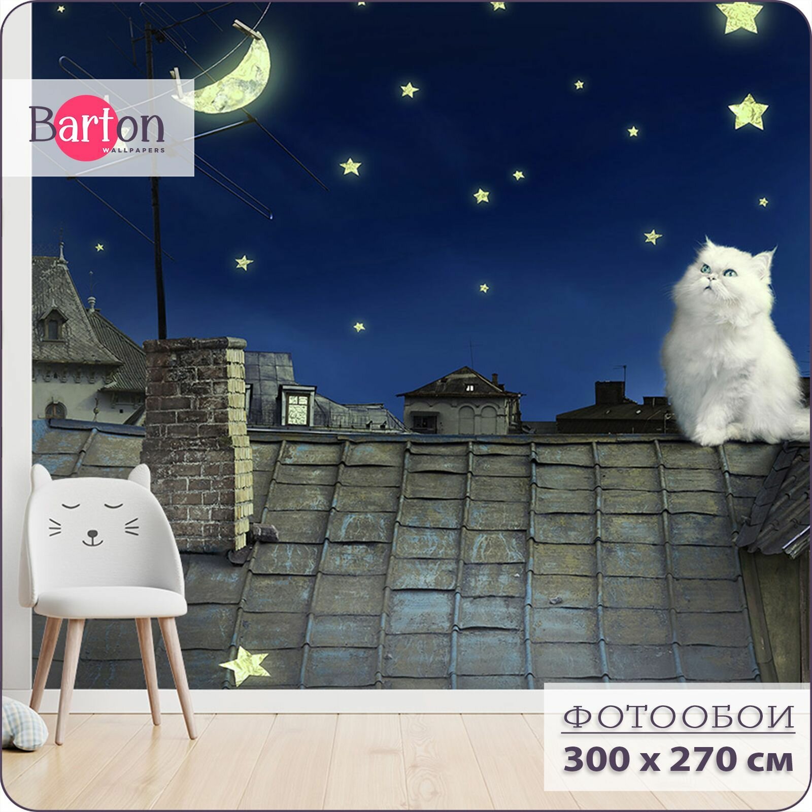 Купить Фотообои на стену флизелиновые 3d Детские Кот на крыше 300х270 см Bartonwall K033-C