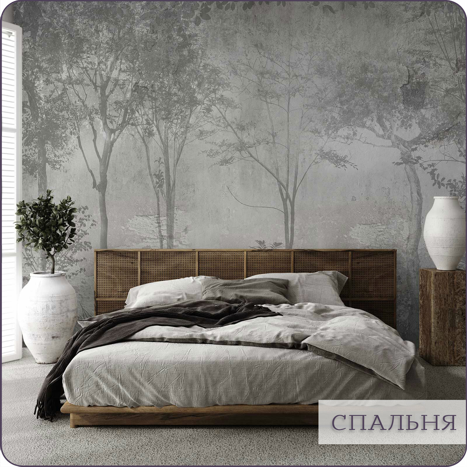 Фотообои на стену флизелиновые 3d Поверхности Бетон Лес 200х270 см Bartonwall M265