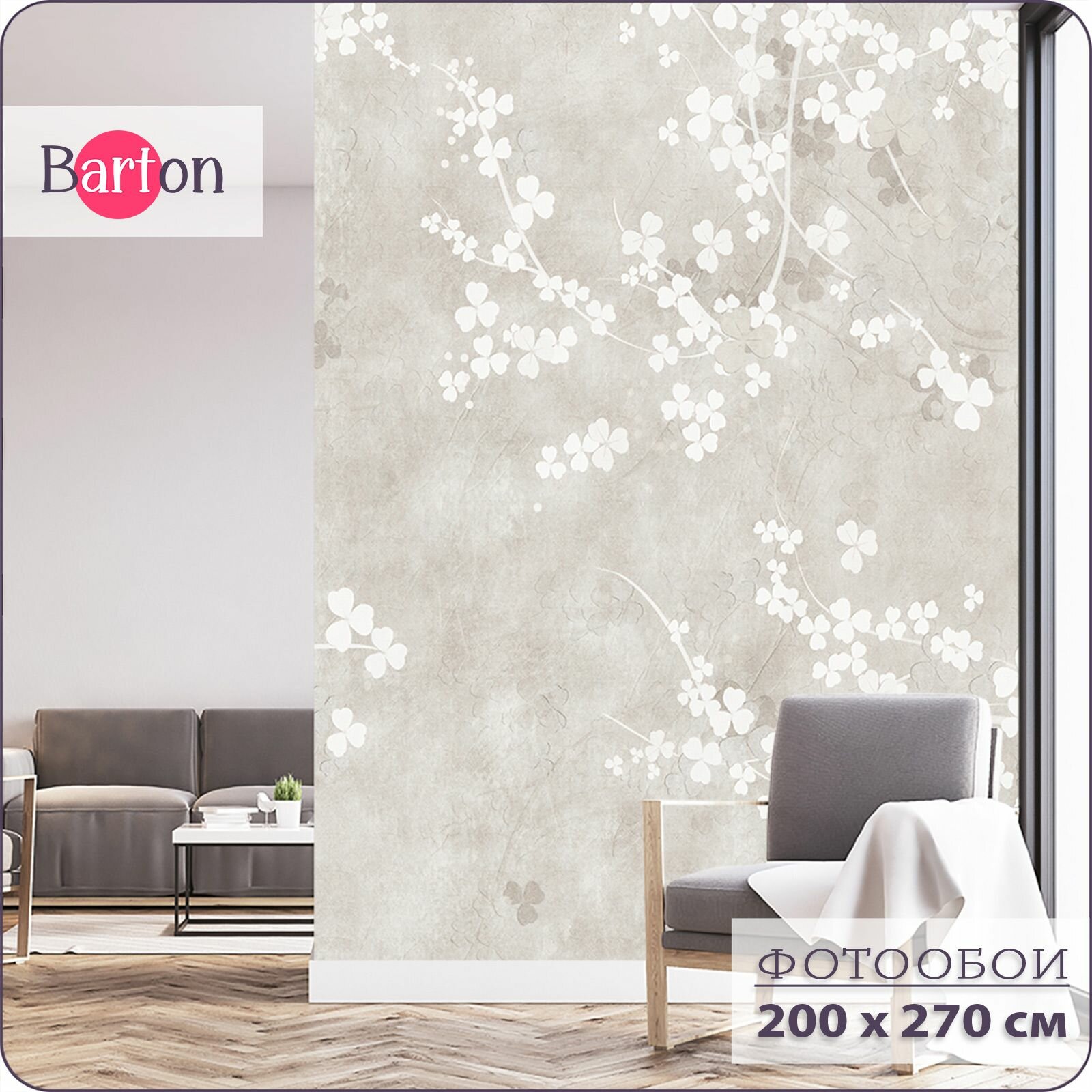 Купить Фотообои на стену флизелиновые 3d Лофт Бетон Цветочный узор 200х270 см Bartonwall M249-B