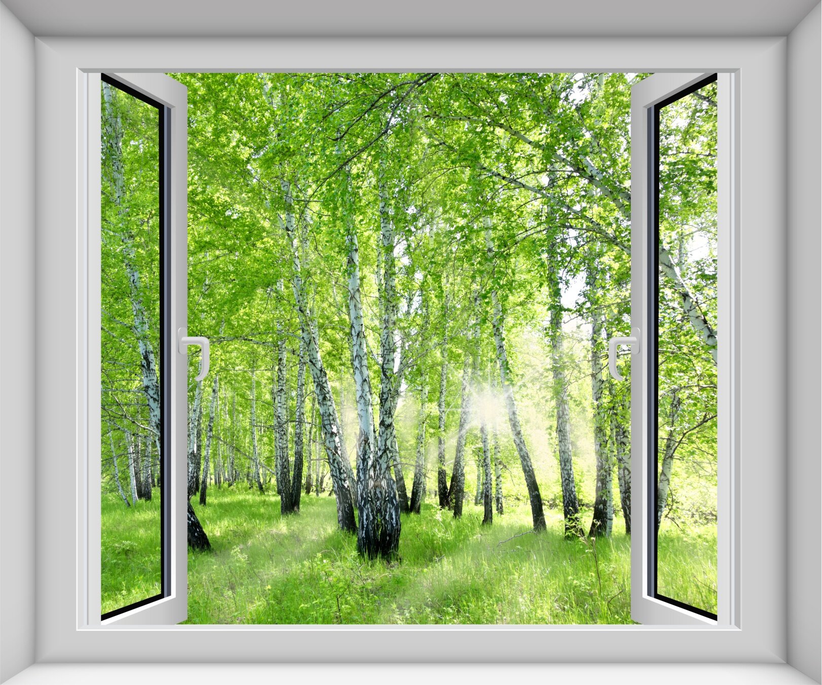 Бесшовные фотообои "Вид из окна на березовую рощу" 100х120 см интересное:
