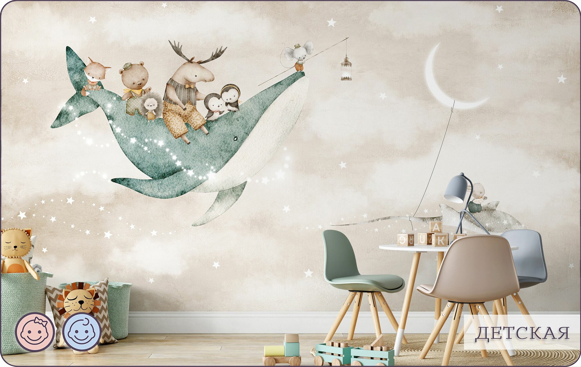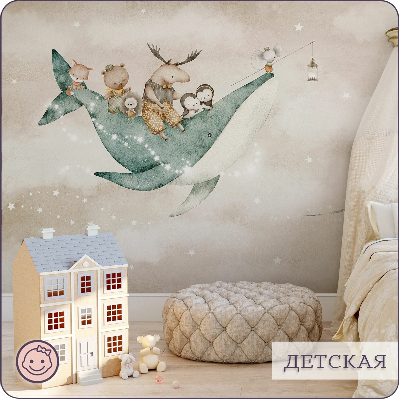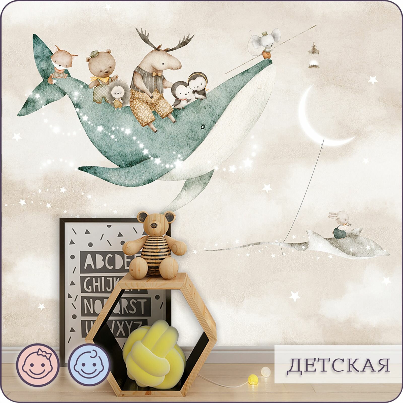 СохранитьФотообои на стену флизелиновые 3d Детские Животные Луна Звезды 300х270 см Bartonwall K302-B интересное: