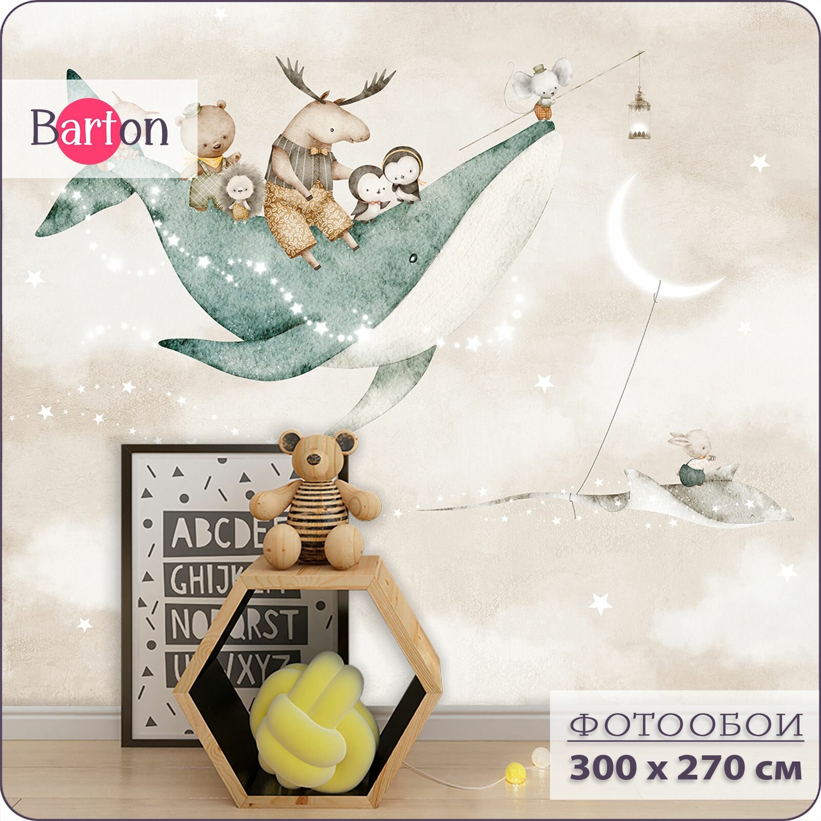 Купить Фотообои на стену флизелиновые 3d Детские Животные Луна Звезды 300х270 см Bartonwall K302-B