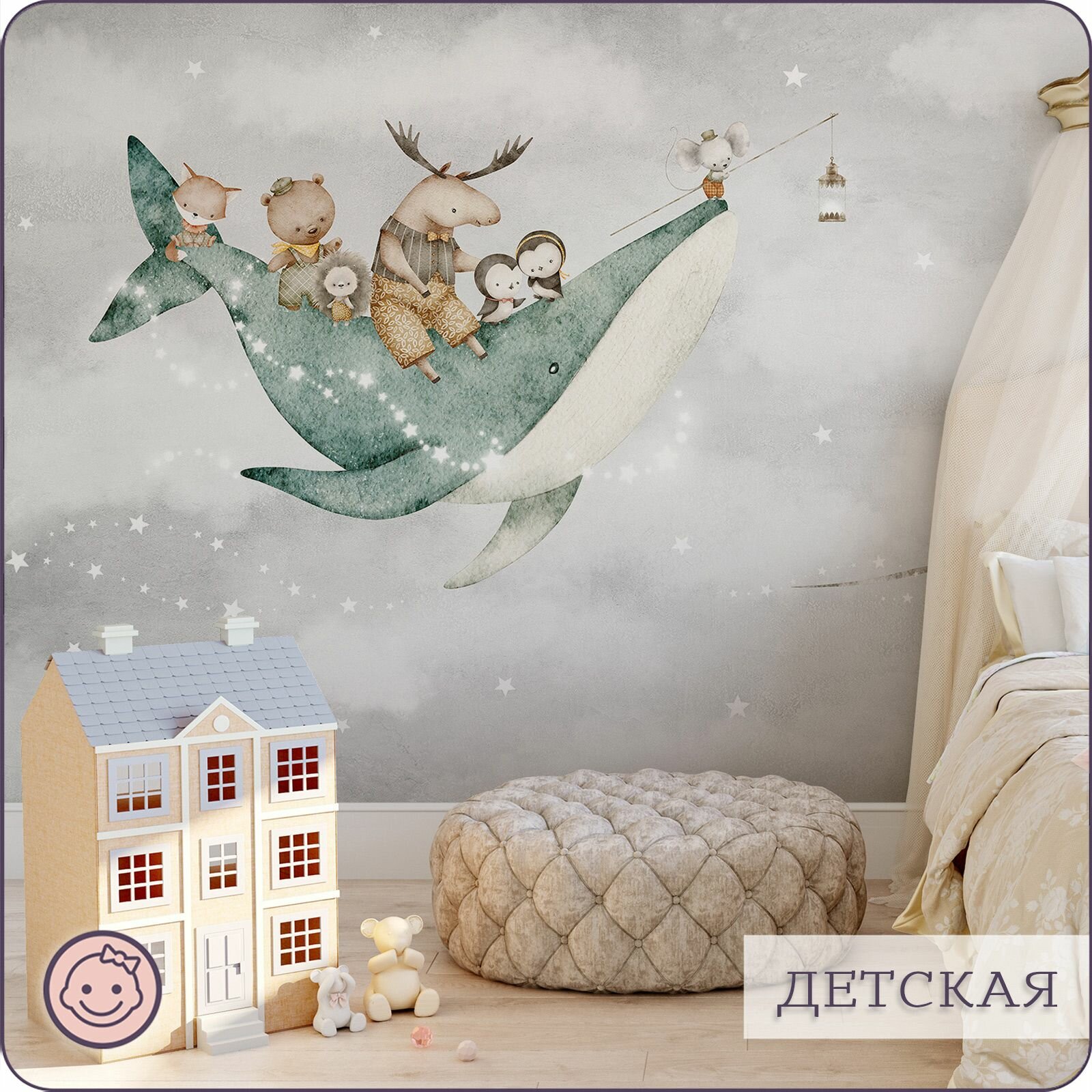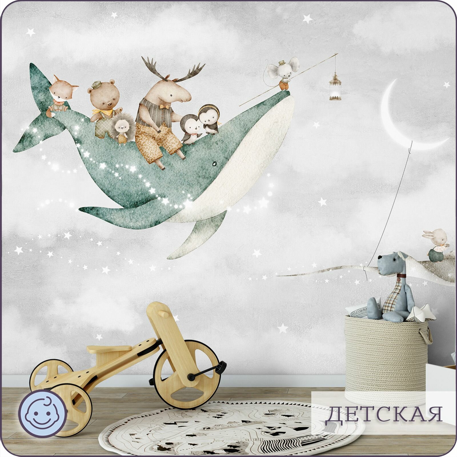 СохранитьФотообои на стену флизелиновые 3d Детские Животные Луна Звезды 400х270 см Bartonwall K302 интересное: