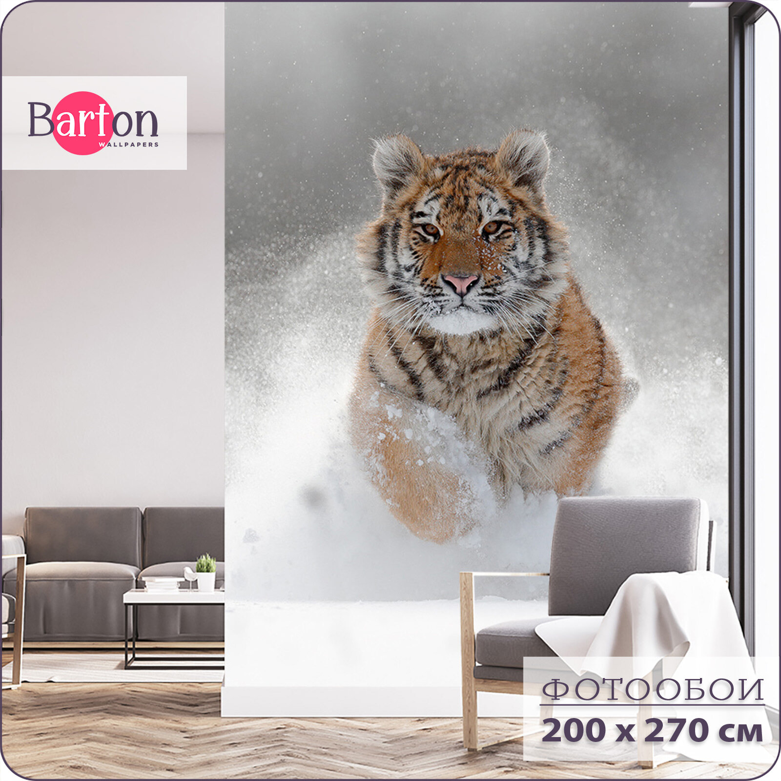 Купить Фотообои на стену флизелиновые 3d Тигр Снег 200х270 см Bartonwall N031