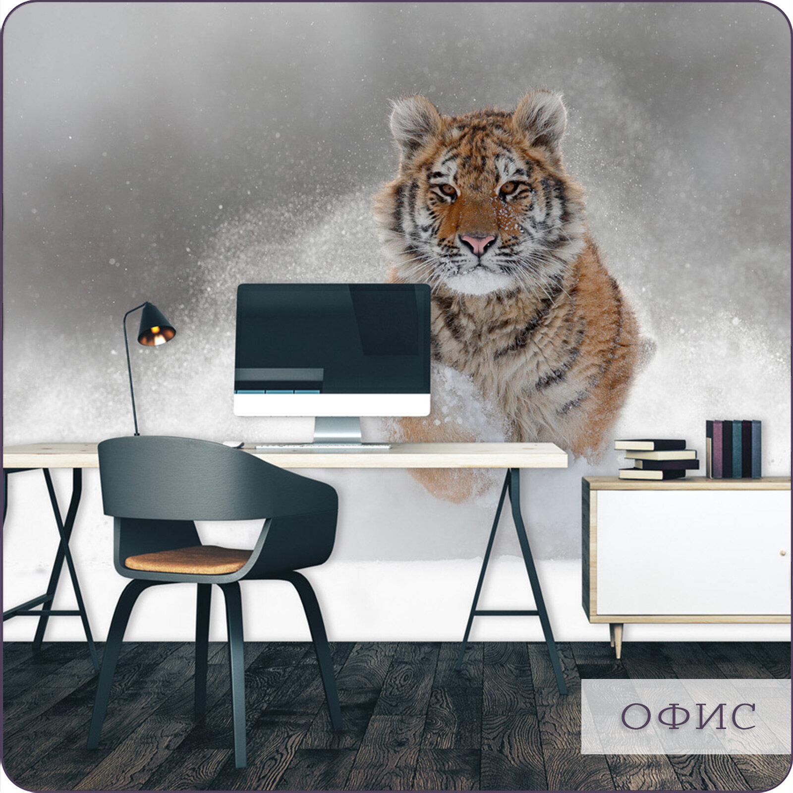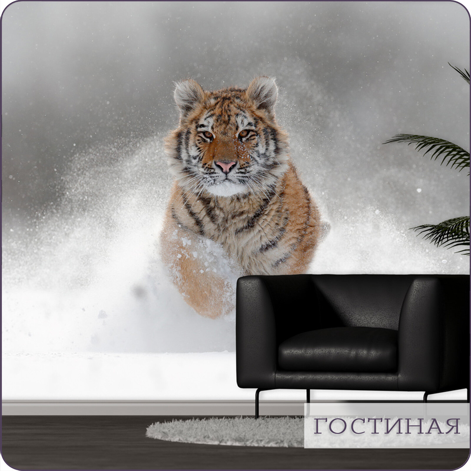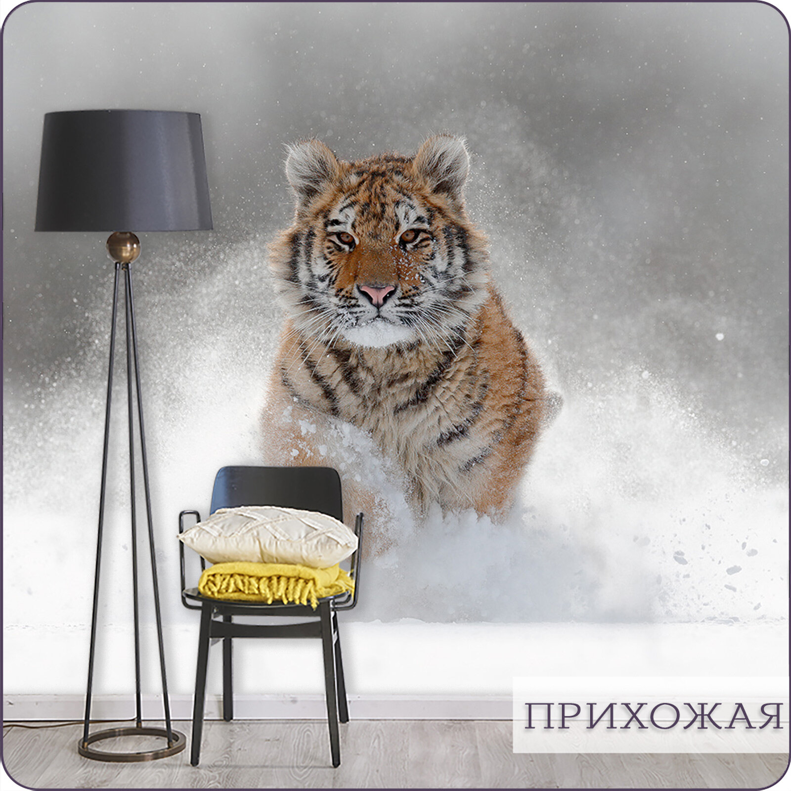 Фотообои на стену флизелиновые 3d Тигр Снег 400х270 см Bartonwall N031 интересное: