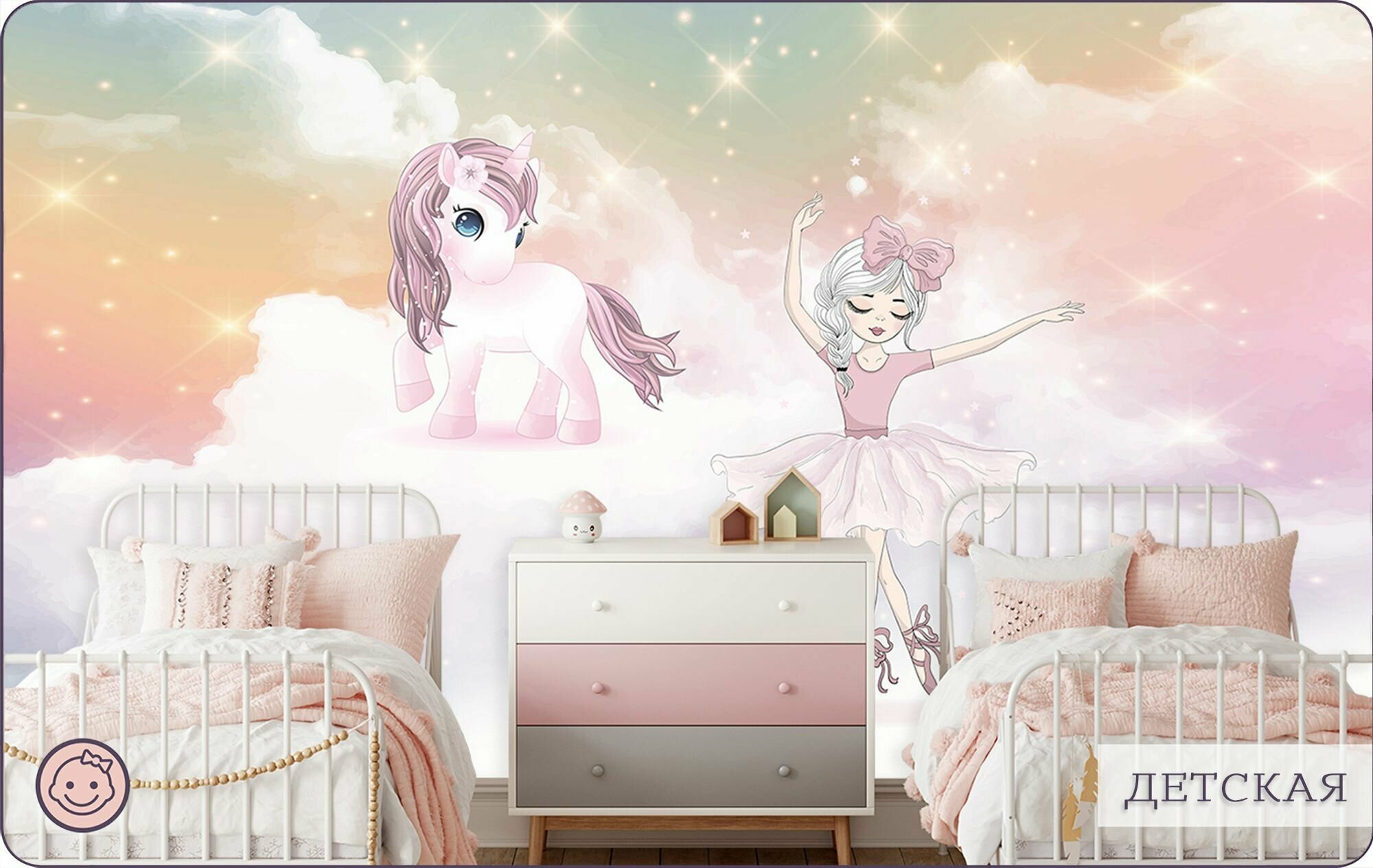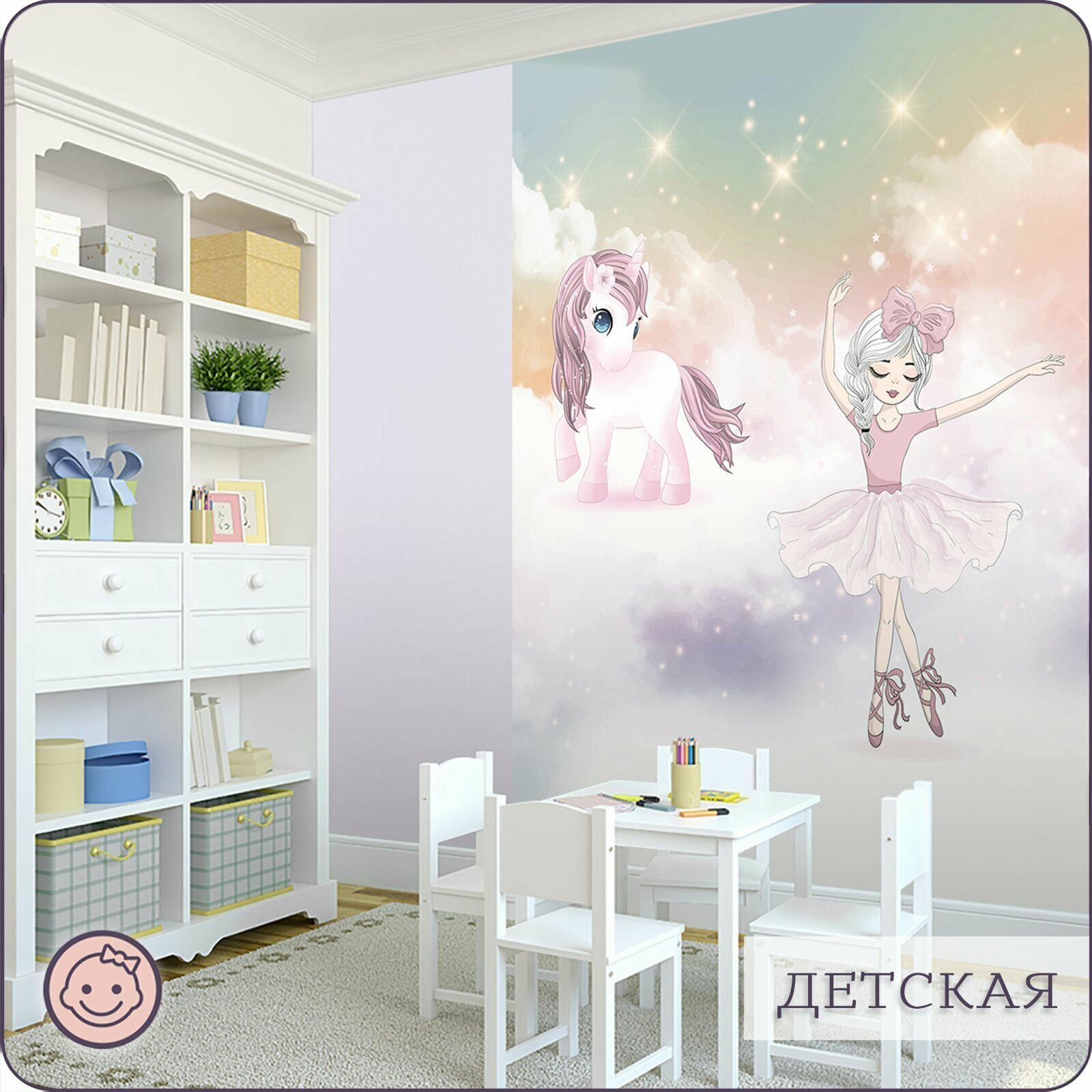 СохранитьФотообои на стену флизелиновые 3d Детские Для девочки Балерина Единорог 300х270 см Bartonwall K190 интересное: