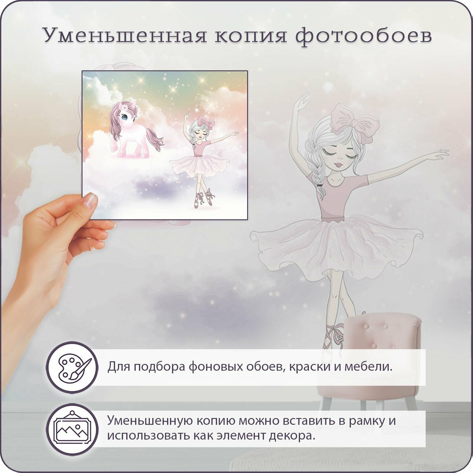 Купить Фотообои на стену флизелиновые 3d Детские Для девочки Балерина Единорог 300х270 см Bartonwall K190