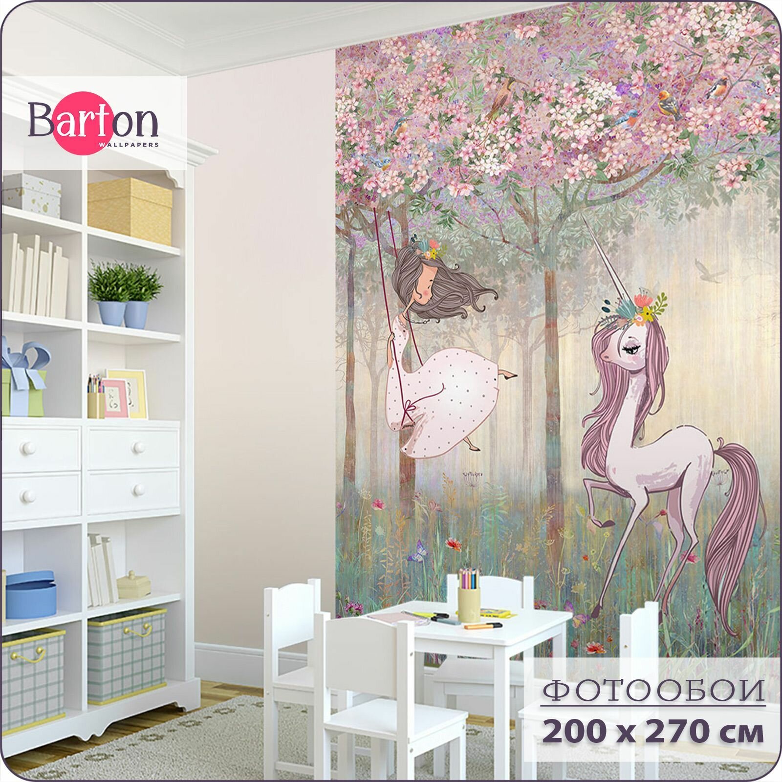 Фотообои на стену флизелиновые 3d Детские Для девочек Принцесса Единорог 200х270 см Bartonwall K259