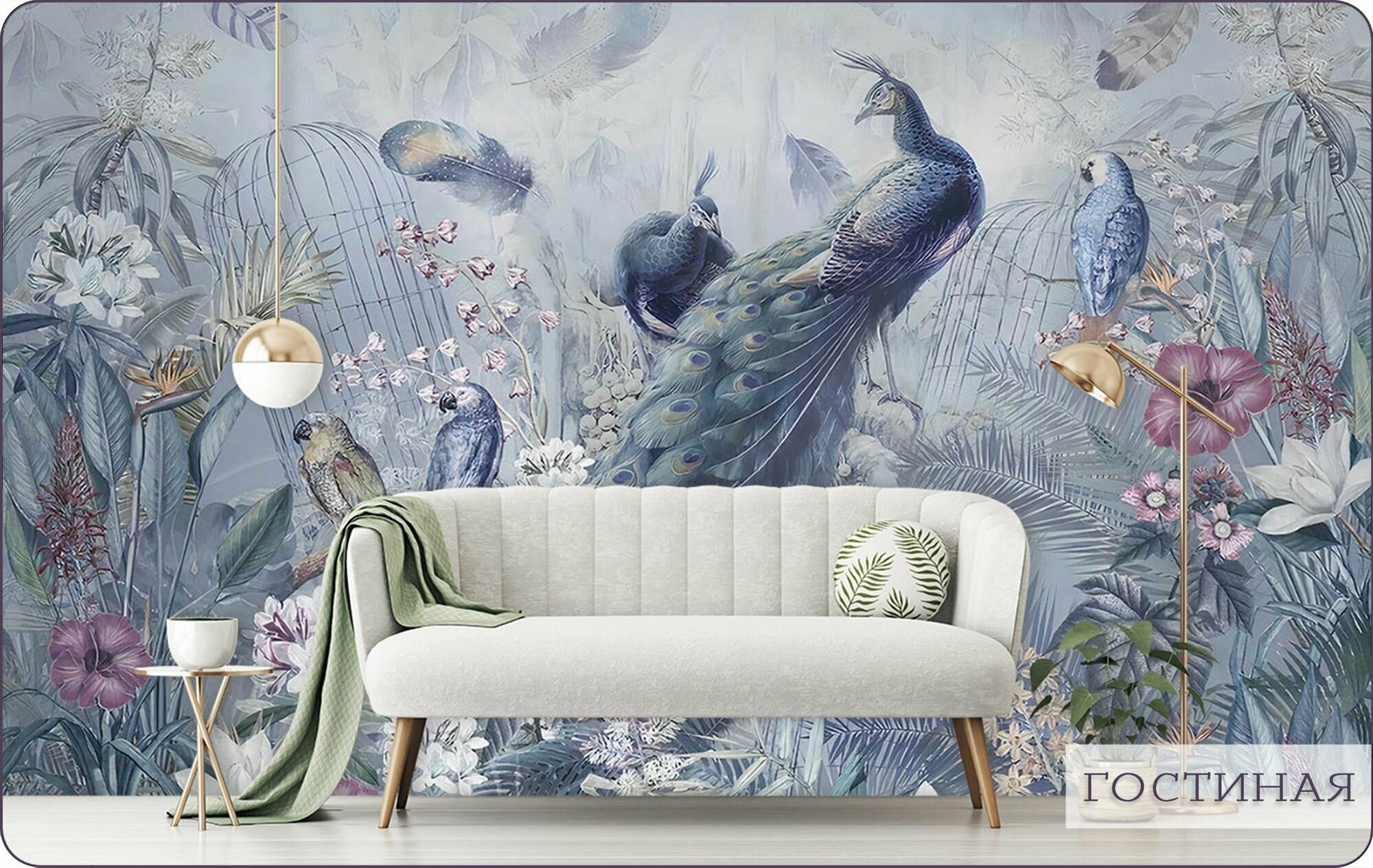 СохранитьФотообои на стену флизелиновые 3d Цветы Попугаи Павлины 200х270 см Bartonwall M205 интересное: