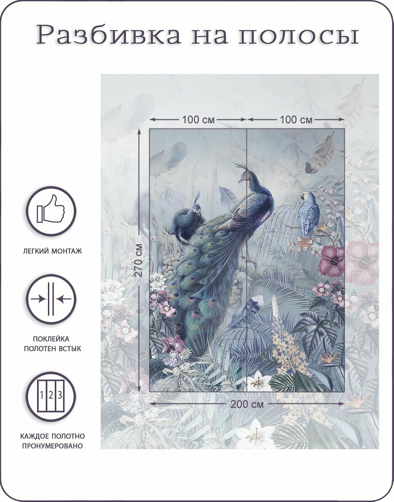 Купить Фотообои на стену флизелиновые 3d Цветы Попугаи Павлины 200х270 см Bartonwall M205