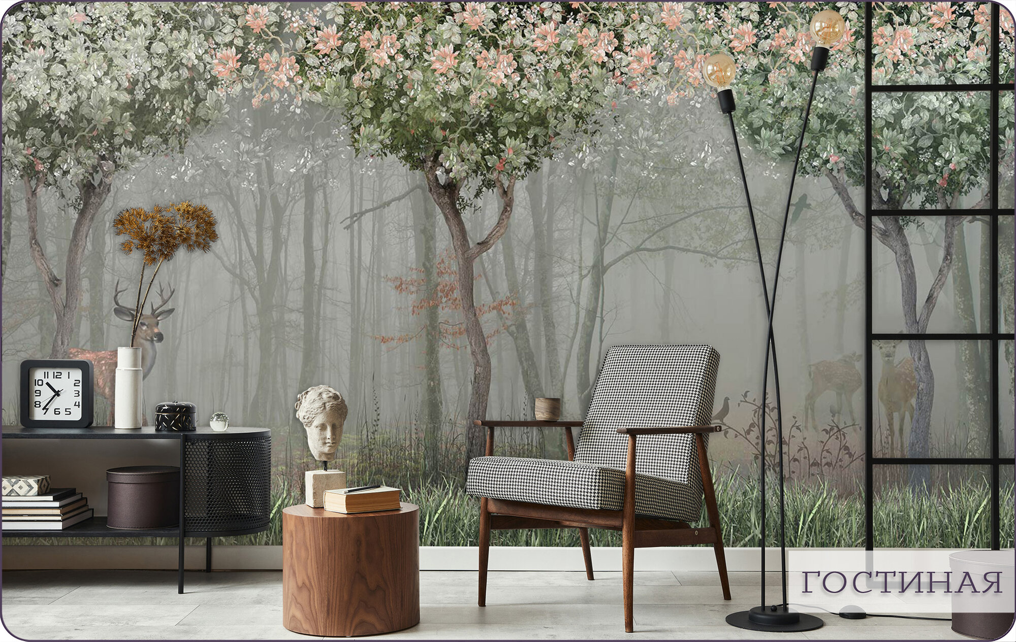 Фотообои на стену флизелиновые 3d Природа Лес 200х270 см Bartonwall N052 интересное: