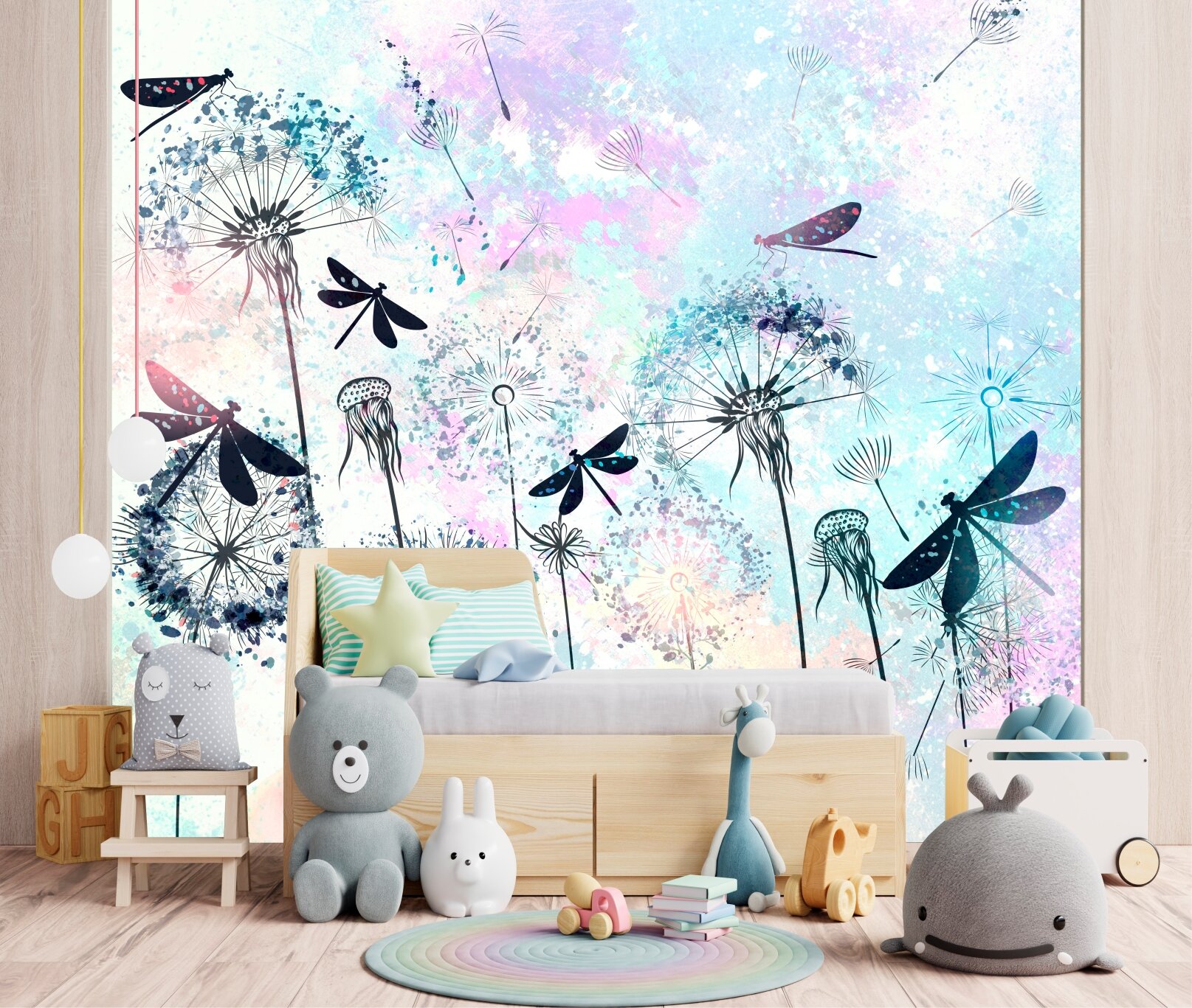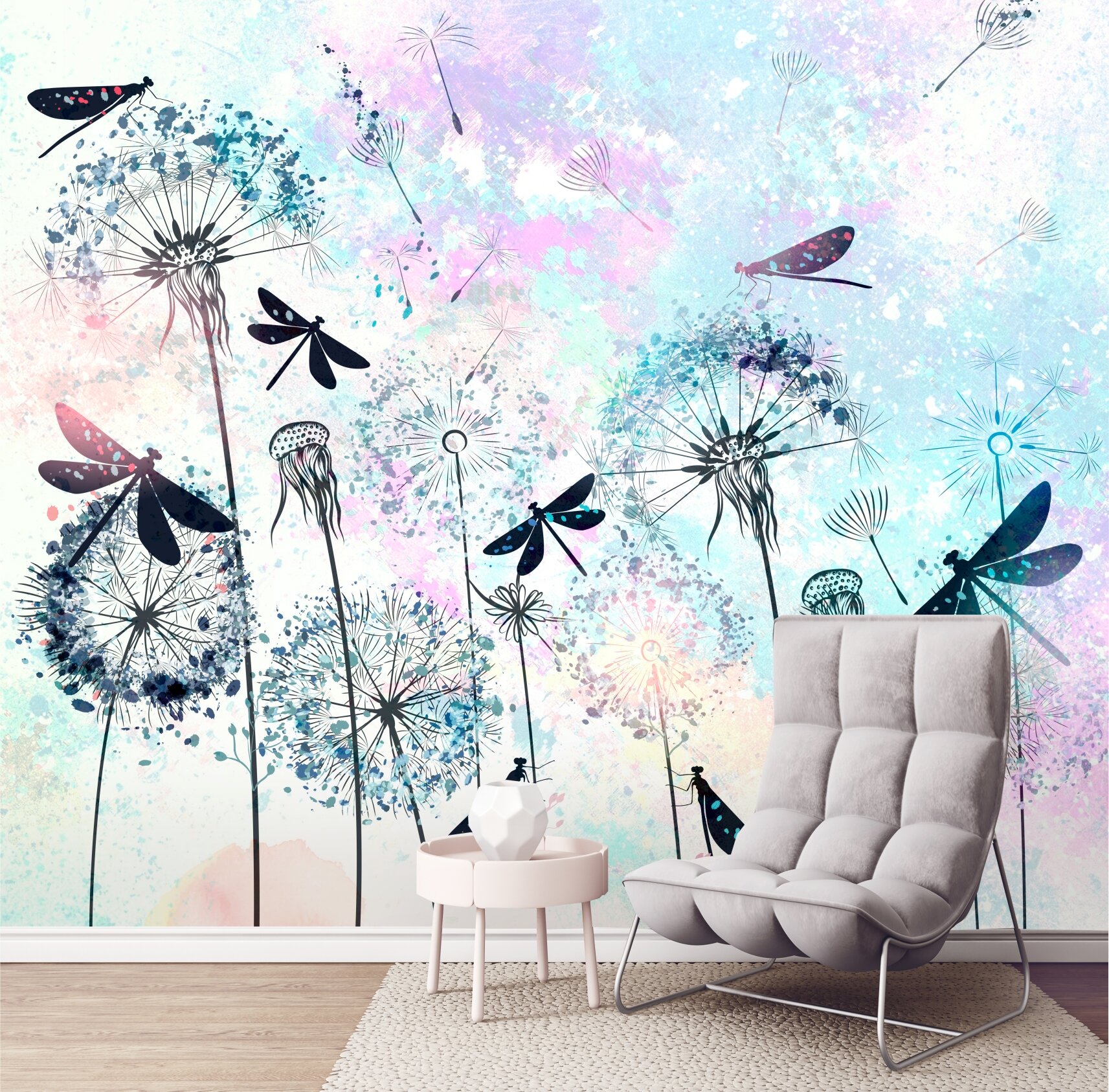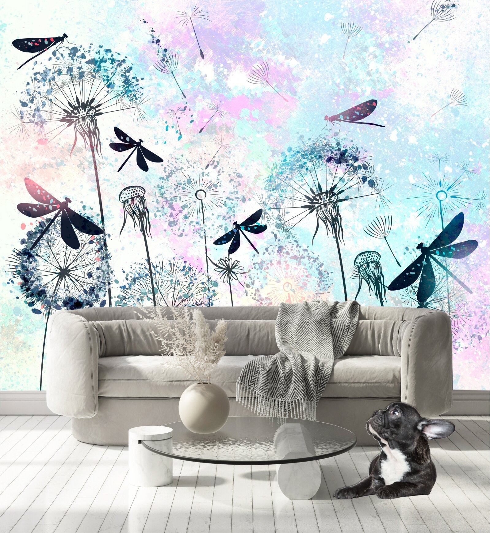 Купить Фотообои "Одуванчики и стрекозы" 300*260 см. /Фотообои для спальни, гостиной, кухни