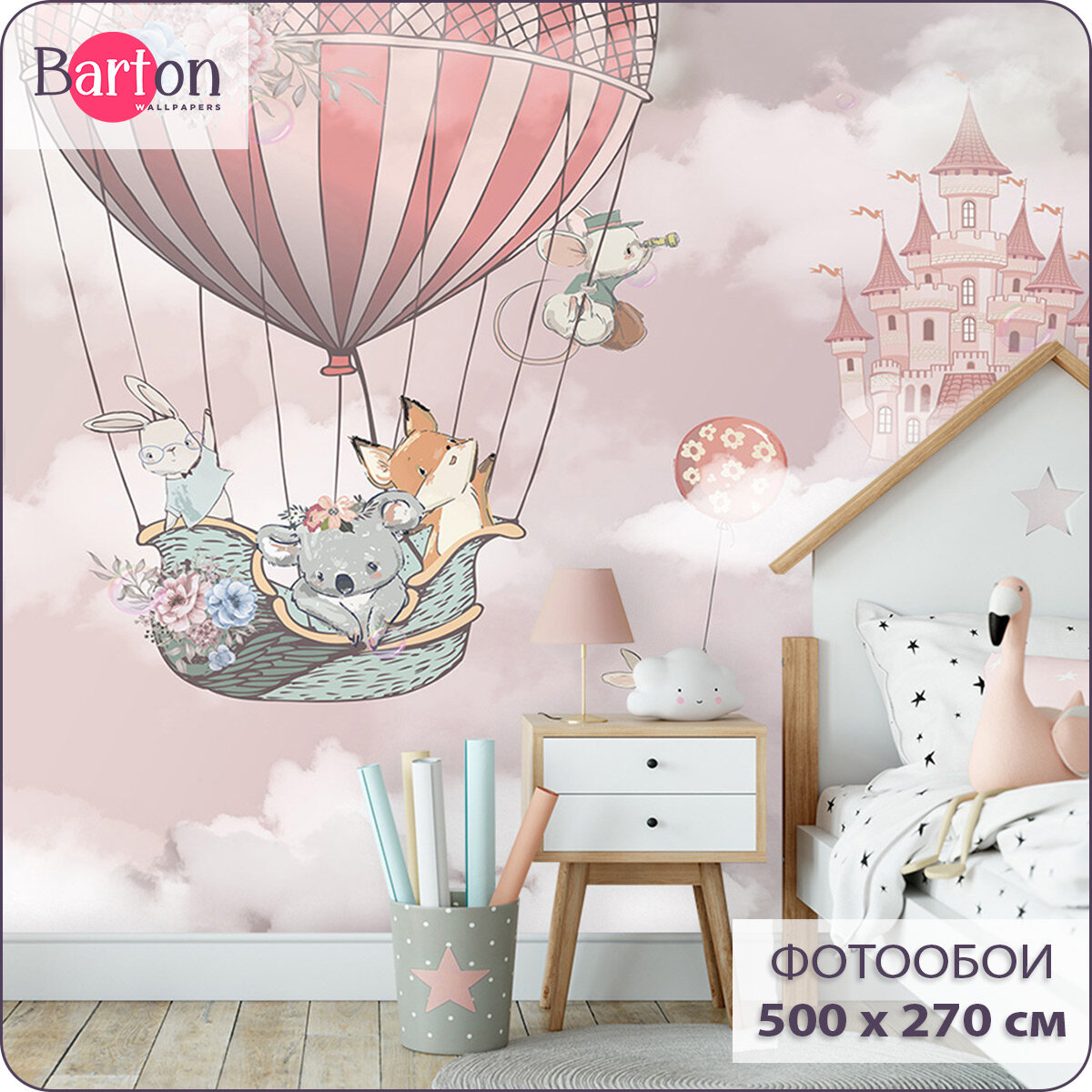 СохранитьФотообои на стену флизелиновые 3d Детские Для девочки Животные Воздушный шар 500х270 см Bartonwall K269 интересное: