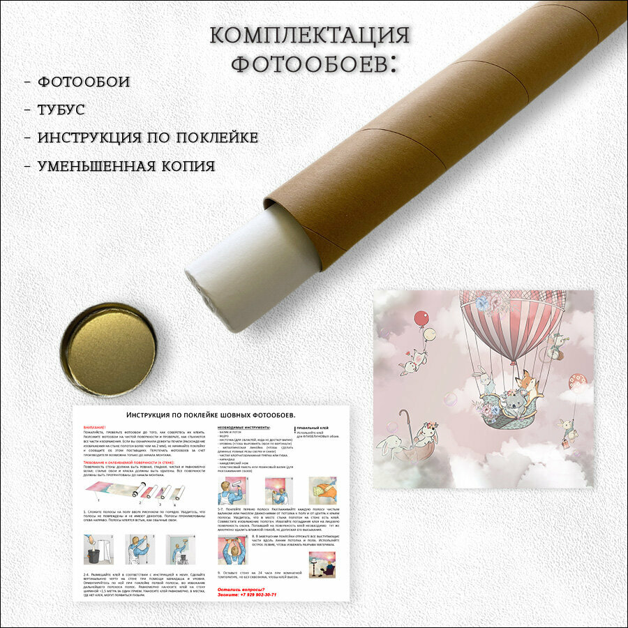 Купить Фотообои на стену флизелиновые 3d Детские Для девочки Животные Воздушный шар 300х270 см Bartonwall K269