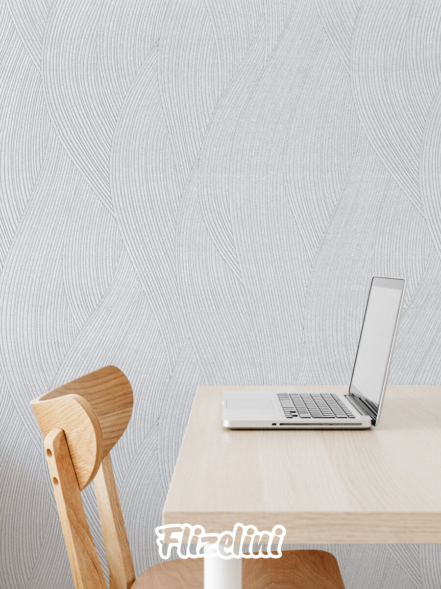 Обои антивандальные виниловые флизелиновые, волны белые, метровые, для спальни, Wave (Flizelini, 1878-11)