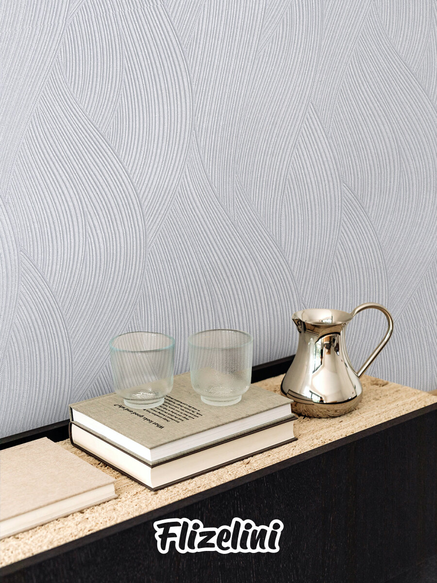 Обои антивандальные виниловые на флизелине, волны светло-серые, метровые, для кухни, Wave (Flizelini, 1878-21)