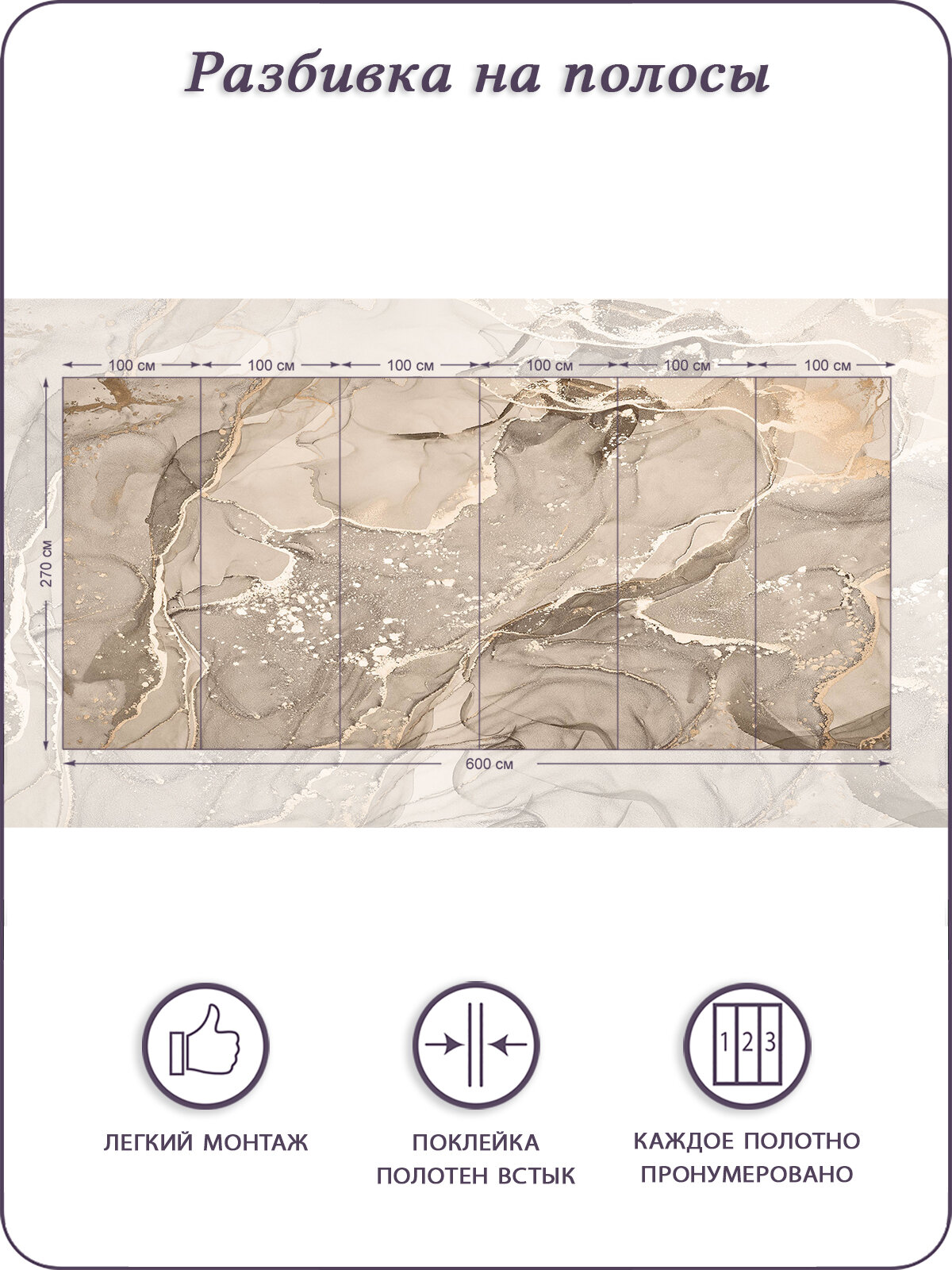 Купить Фотообои на стену флизелиновые 3d Мрамор Флюид Разводы 600x270 см Bartonwall M061-B