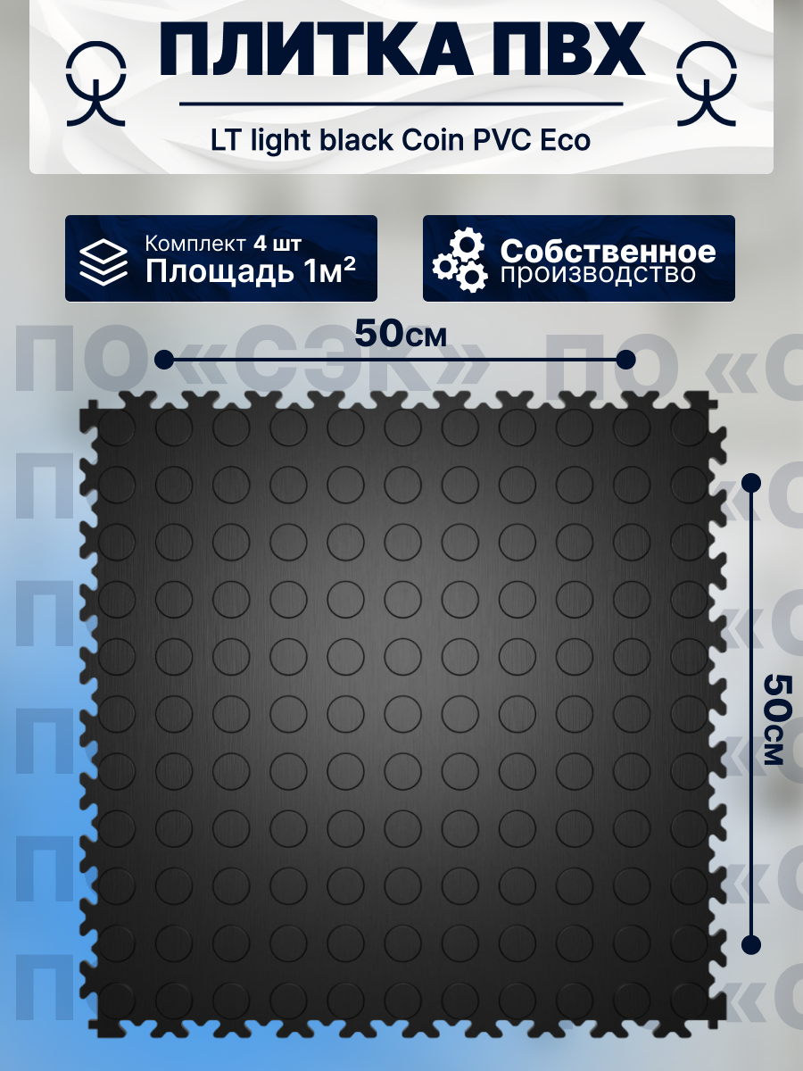 Купить Модульная плитка ПВХ на пол ПО СЭК LT light black Coin PVC Eco 50 x 50 см, толщина 5мм, 43-й класс