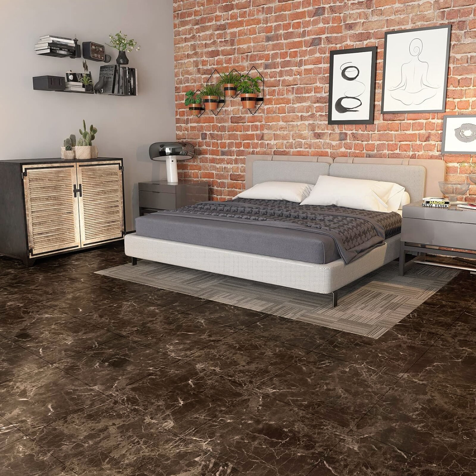 Самоклеящаяся плитка для пола влагостойкая кварц виниловая клеевая "Шунгит темный" 30.48 х 30.48 см 18 шт.