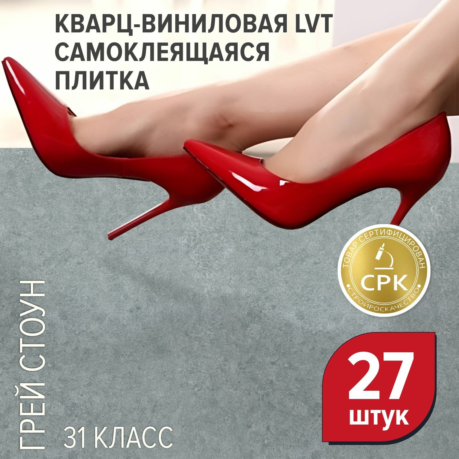 Купить Cамоклеящаяся влагостойкая кварц виниловая плитка для пола клеевая "Грей стоун" 30.48 х 30.48 см 27 шт. вместо линолеума и ламината из МДФ
