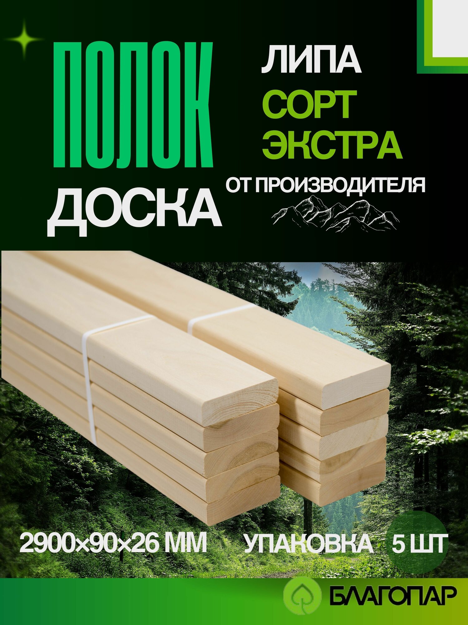 Полок доска липа благопар 3000х90х26 мм сорт Экстра упаковка 5 шт.