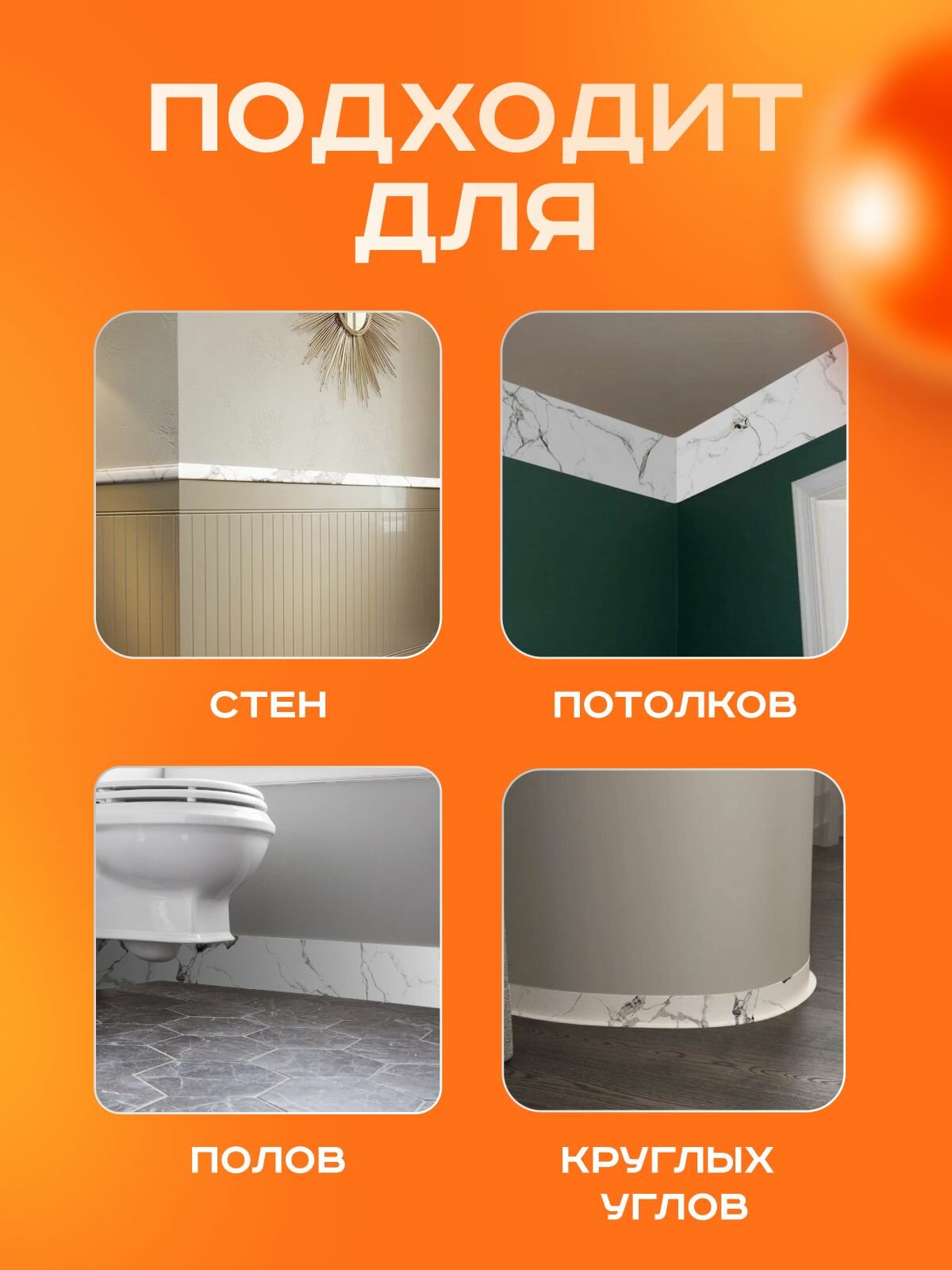 СохранитьПлинтус гибкий напольный самоклеящийся, 65мм х 25м, белый мрамор, гибкий плинтус для пола. интересное: