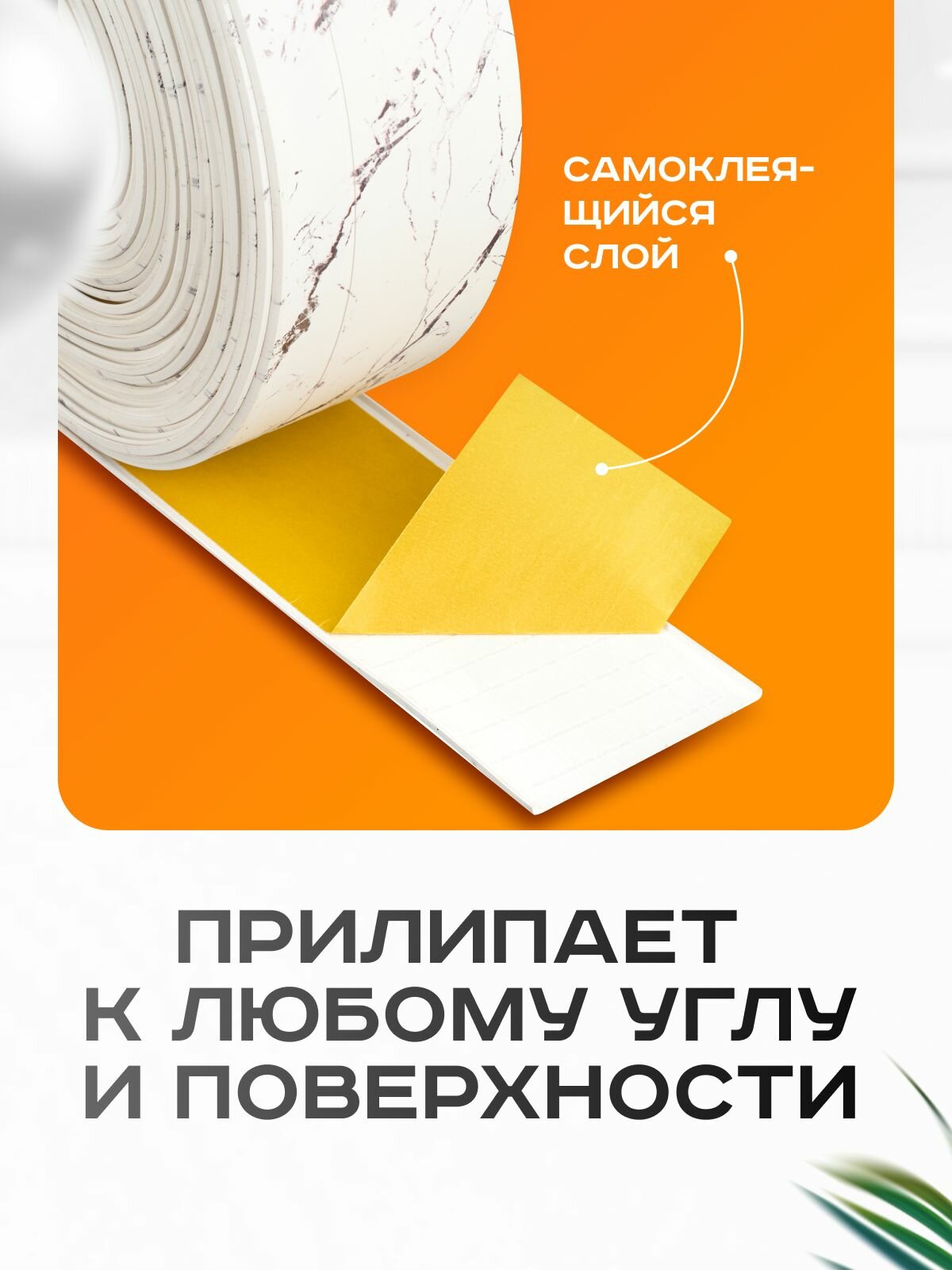 Плинтус гибкий напольный самоклеящийся, 65мм х 3м, белый мрамор, гибкий плинтус для пола.