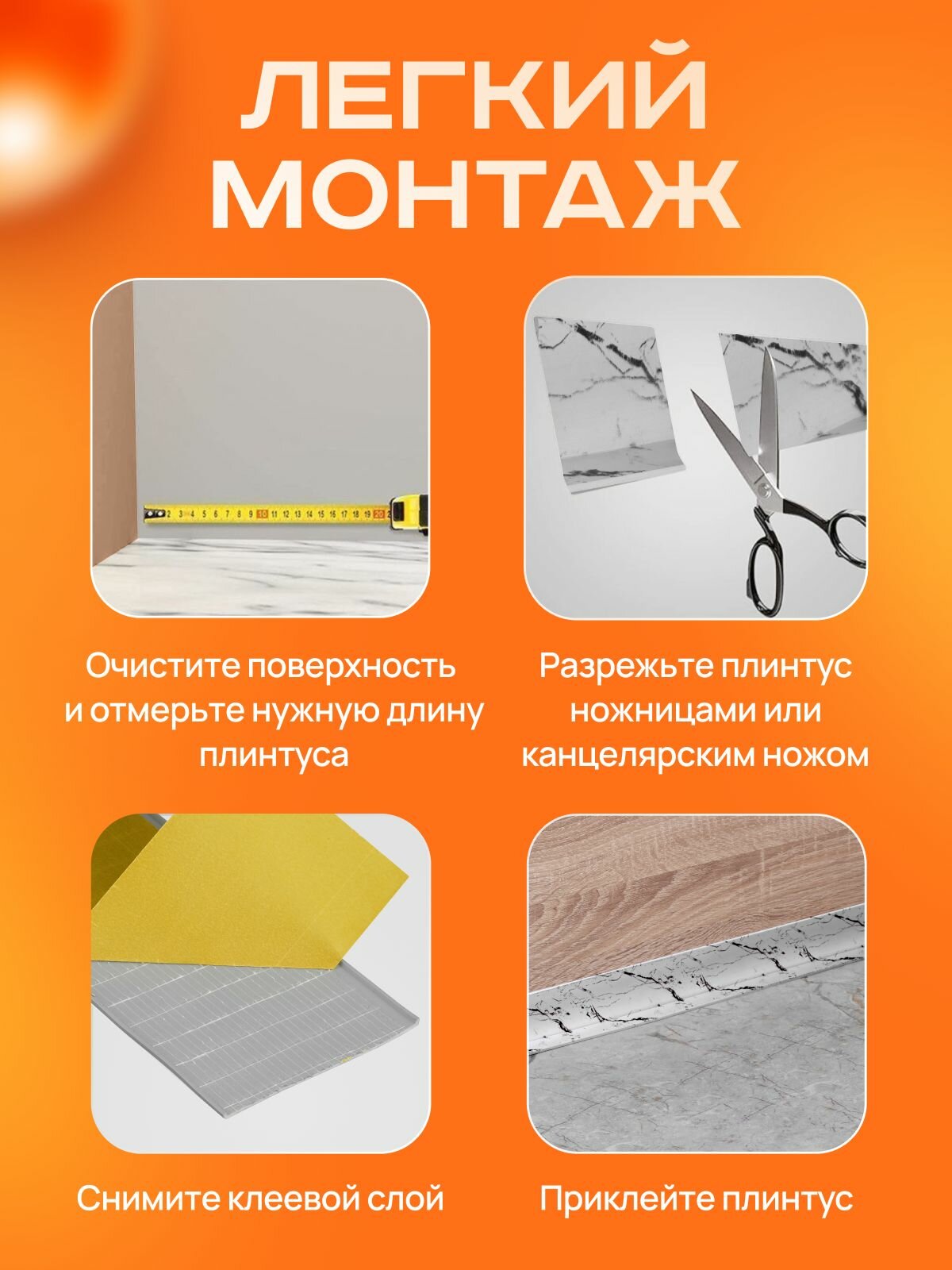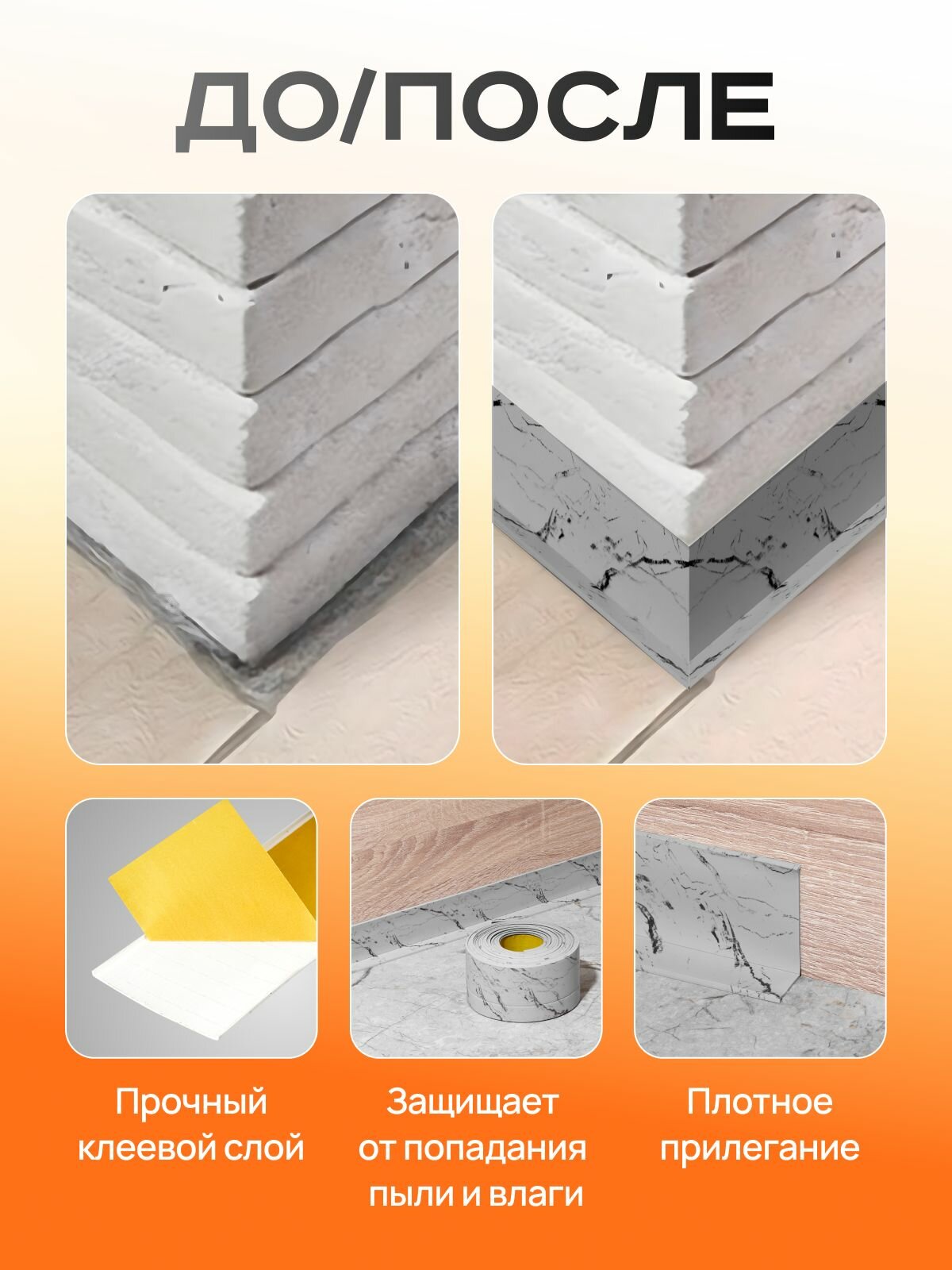 СохранитьПлинтус гибкий напольный самоклеящийся, 65мм х 25м, светло-серый мрамор, гибкий плинтус для пола. интересное: