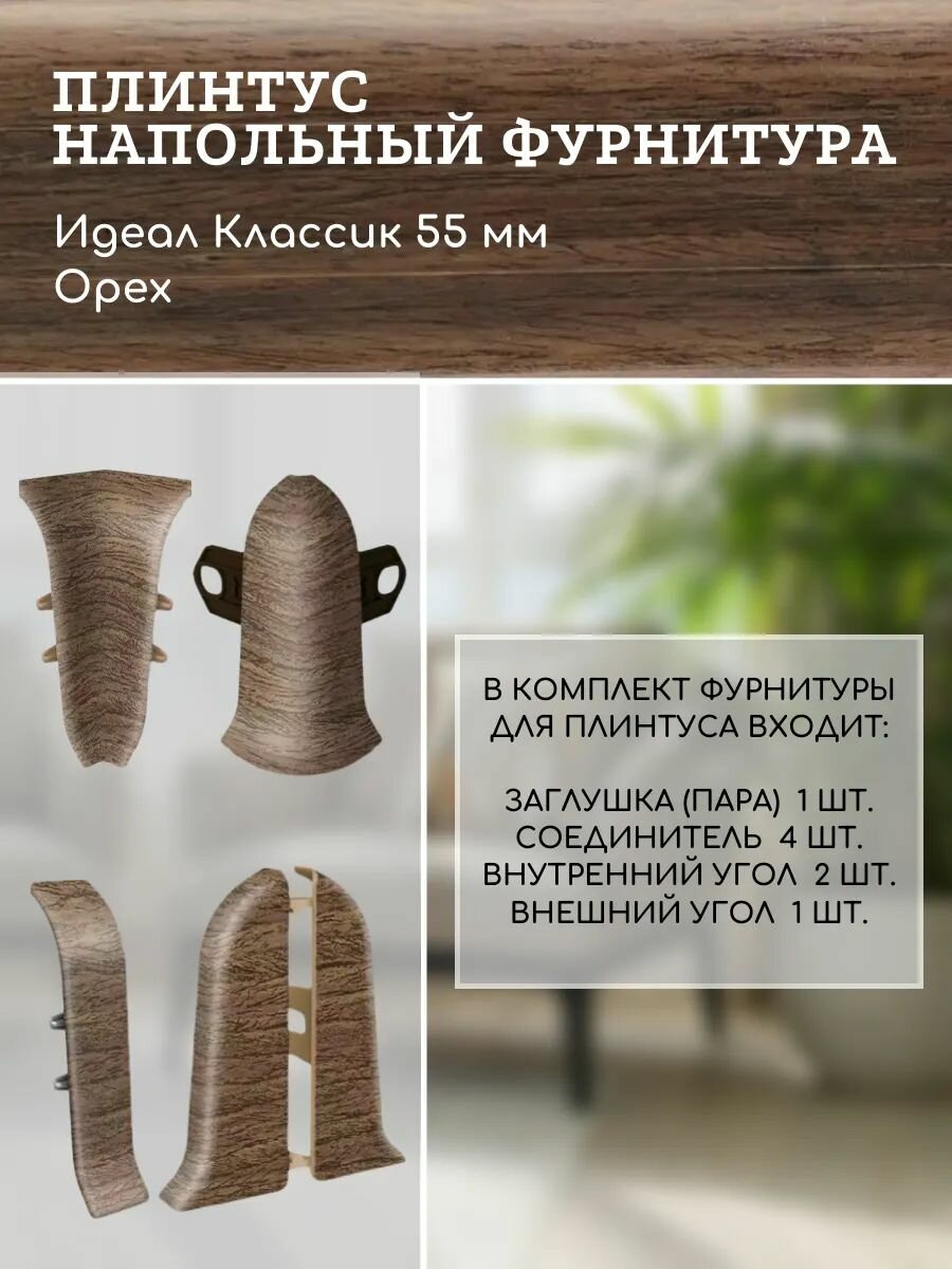 Фурнитура для напольного плинтуса 55 мм (комплект) орех интересное: