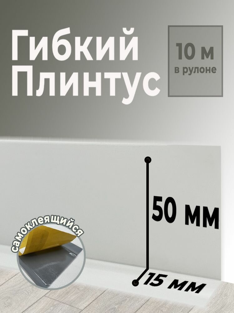 Плинтус мягкий AURI ПВХ самоклеящийся, серый, 50х15х10 000 мм (06913)