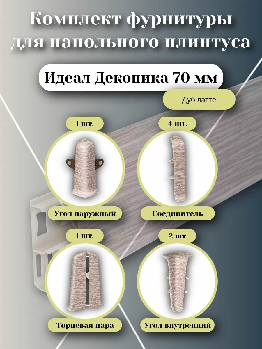 Фурнитура для напольного плинтуса 70 мм (комплект) дуб латте интересное: